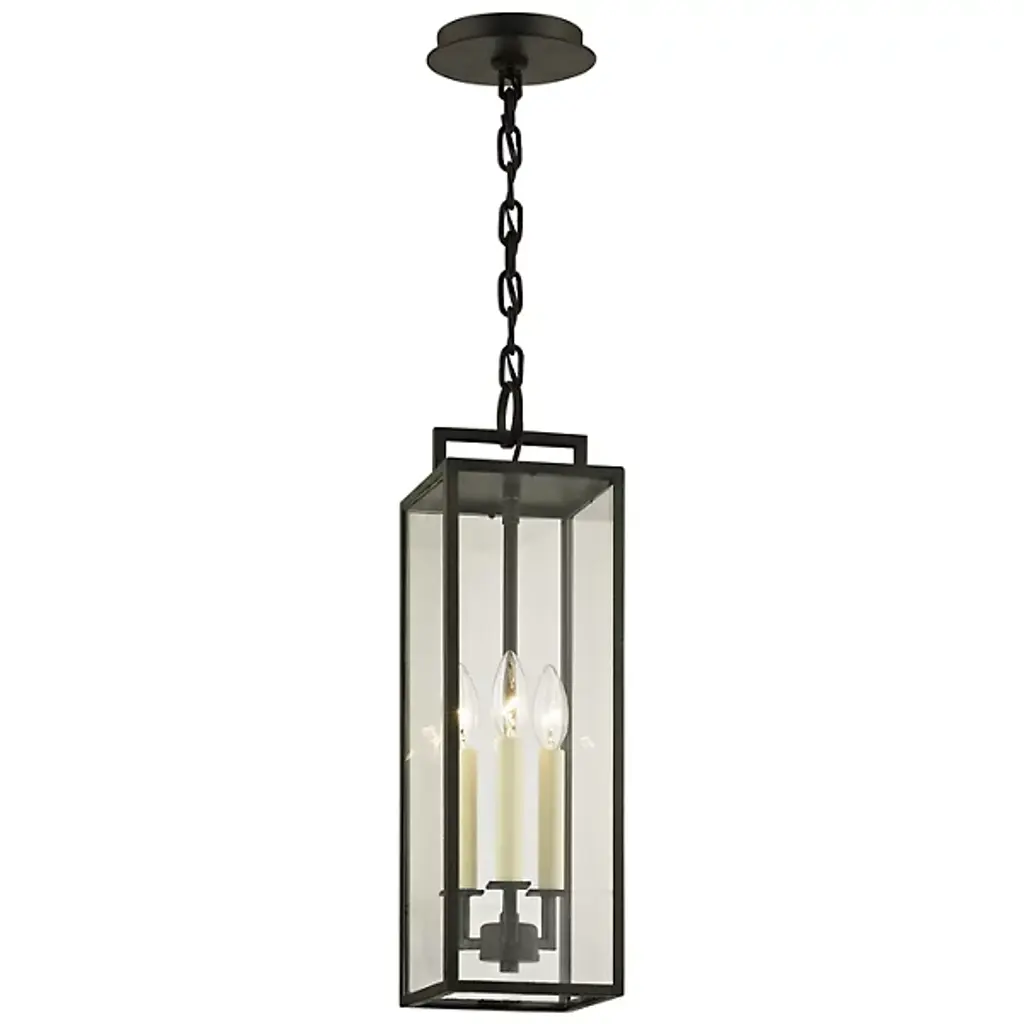 Troy Lighting designed the Beckham Outdoor Pendant with the traditional centerpiece quality of its predecessors - plus a distinctly modern twist. A large lantern framed in squared Cast Iron, this pendant features Clear Glass panes on all side that opens up its profile and makes it the ideal choice for walkways and porticos. A tall and handsome piece, it features a candelabra lamping that touches on classic favorite looks from yesteryear.