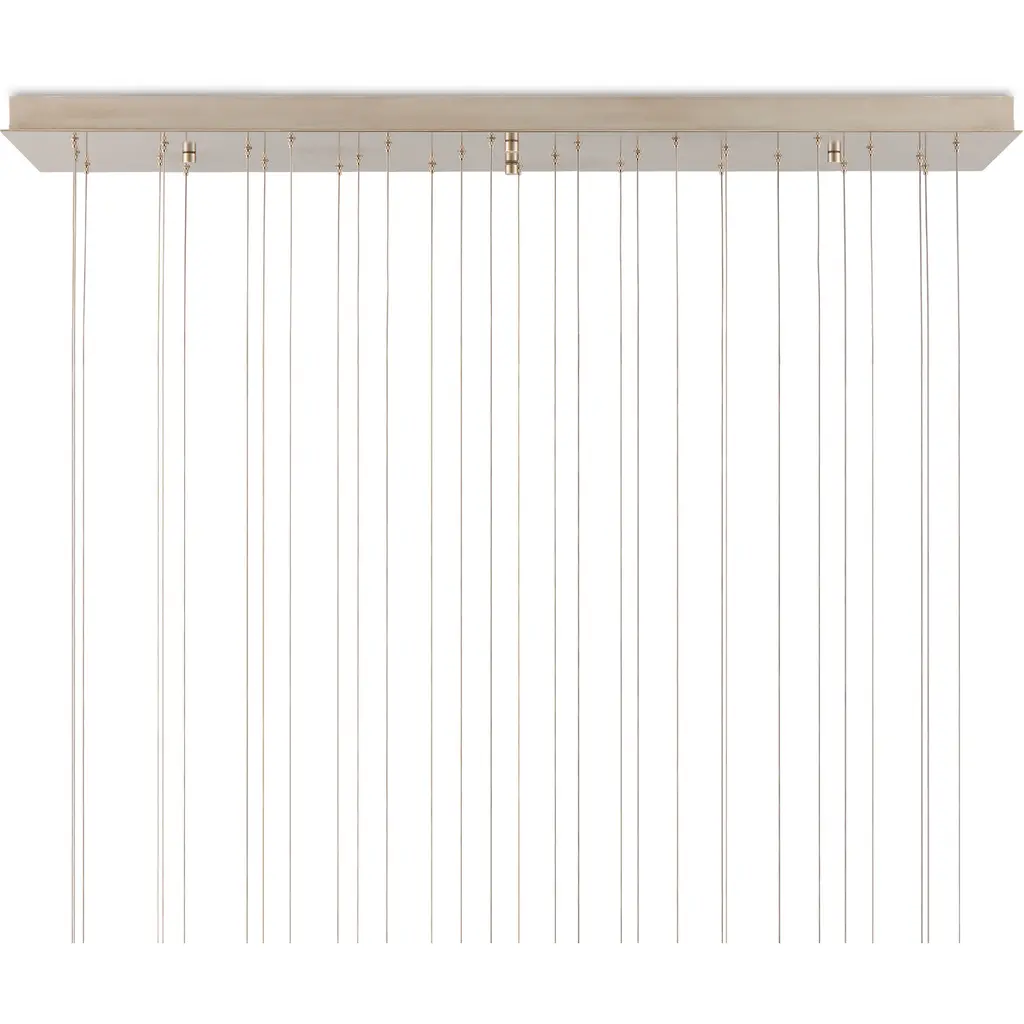 The Beehive 30-Light Multi-Drop Pendant has rattan bell-shaped shades. Because the natural material is not perfectly uniform, there are fissures in the shades that allow illumination to escape to create a warm glow. The canopies of the rattan pendants in this collection are luminous in a painted silver finish. This fixture is among Currey & Company’s introduction of cluster lights, which includes from 1-light up to 36-light configurations.