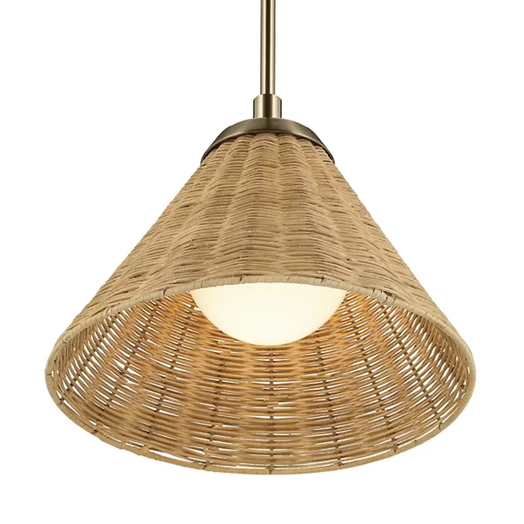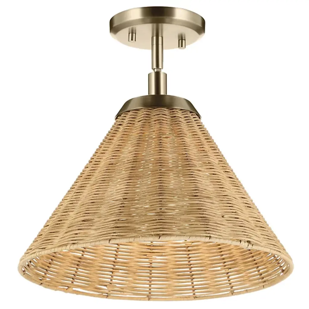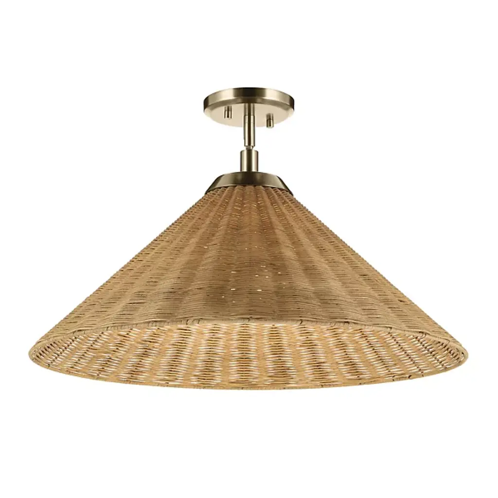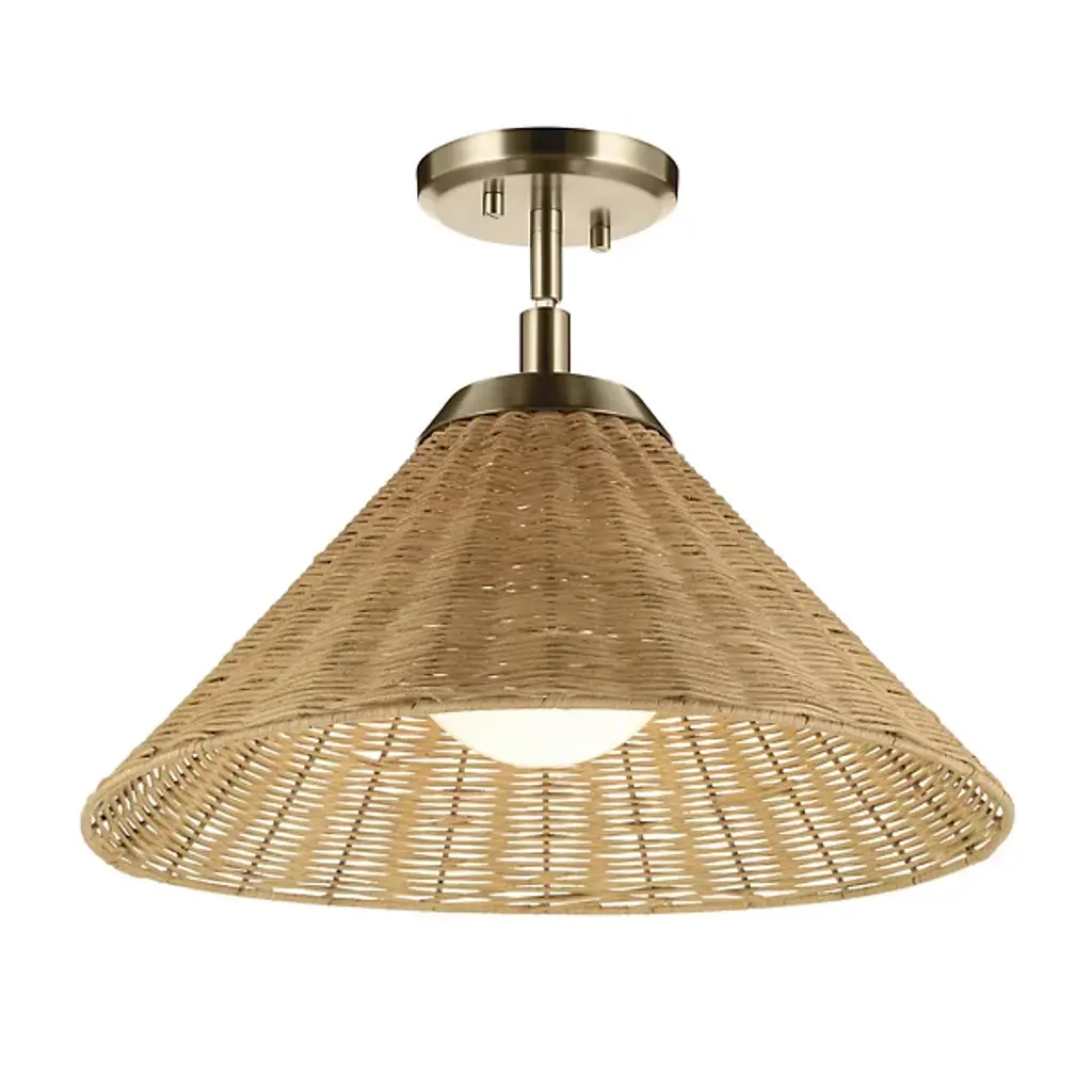 The Bekah Convertible Pendant/Semi Flushmount from Kichler offers an artisanal enhancement to inside spaces, putting an emphasis on its flaring rattan shade. Customizable as a compact design or a more offering, it casts a spot of direct downlight through the shade’s open base, dep elongated ending on how much of the steel stem is used. The downlight and ambient glow burnish the sleek steel, accompanied by sparkles of light that emanate to the sides through the shade’s woven walls.