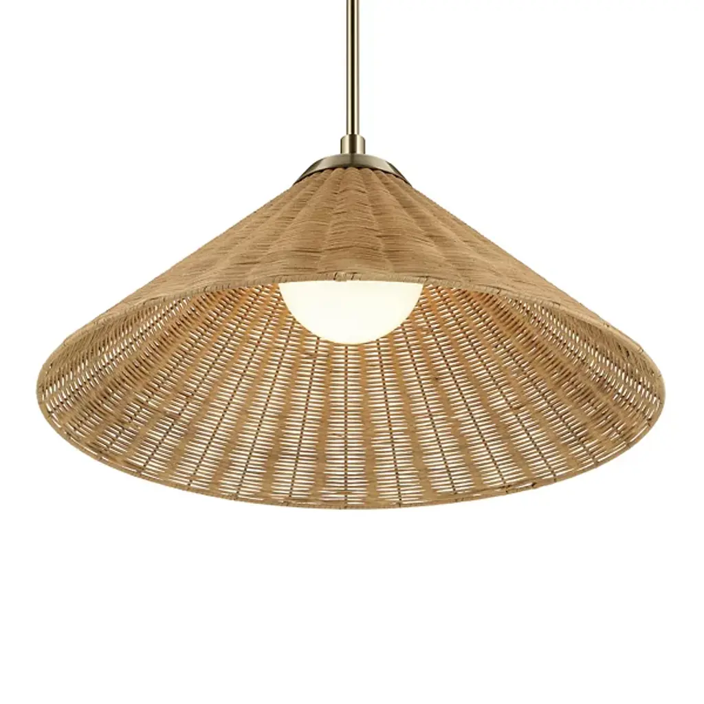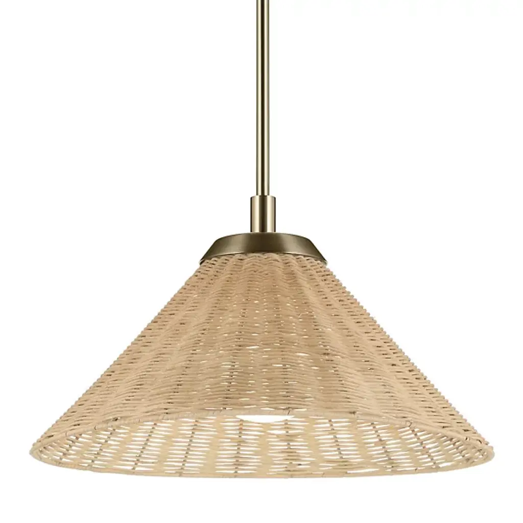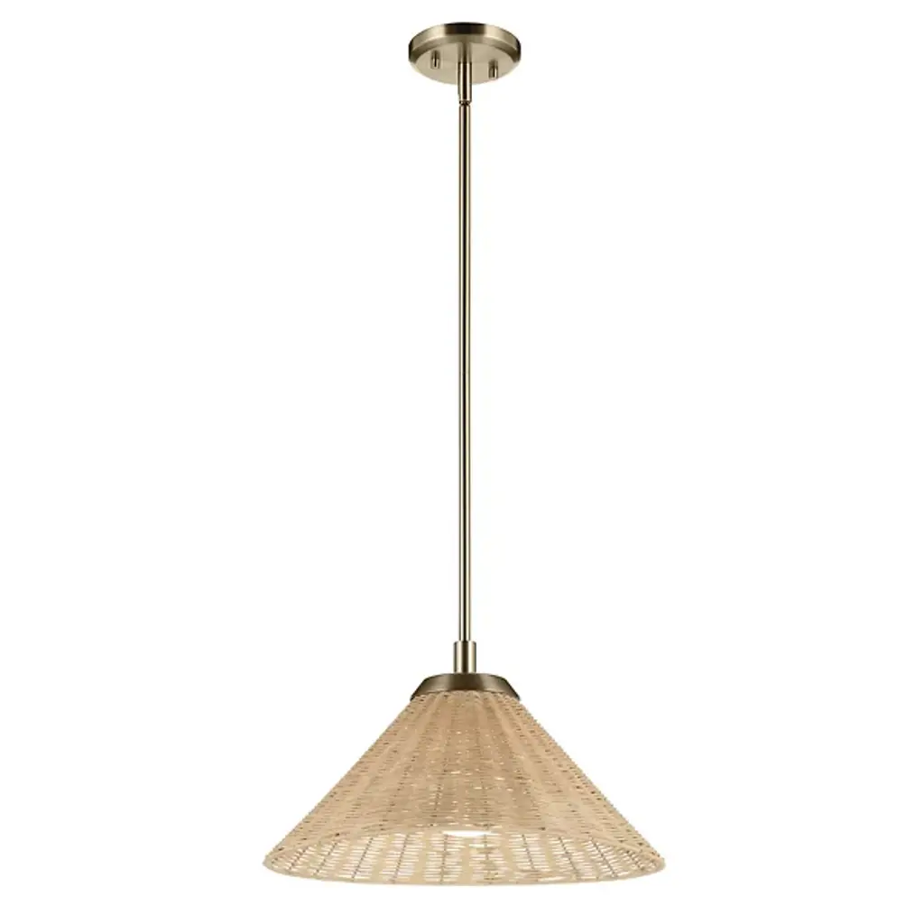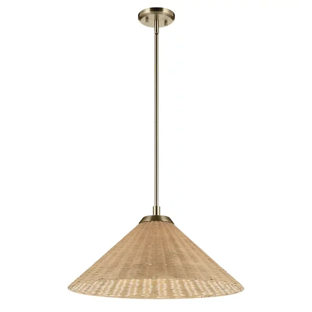 The Bekah Convertible Pendant/Semi Flushmount from Kichler offers an artisanal enhancement to inside spaces, putting an emphasis on its flaring rattan shade. Customizable as a compact design or a more offering, it casts a spot of direct downlight through the shade’s open base, dep elongated ending on how much of the steel stem is used. The downlight and ambient glow burnish the sleek steel, accompanied by sparkles of light that emanate to the sides through the shade’s woven walls.
