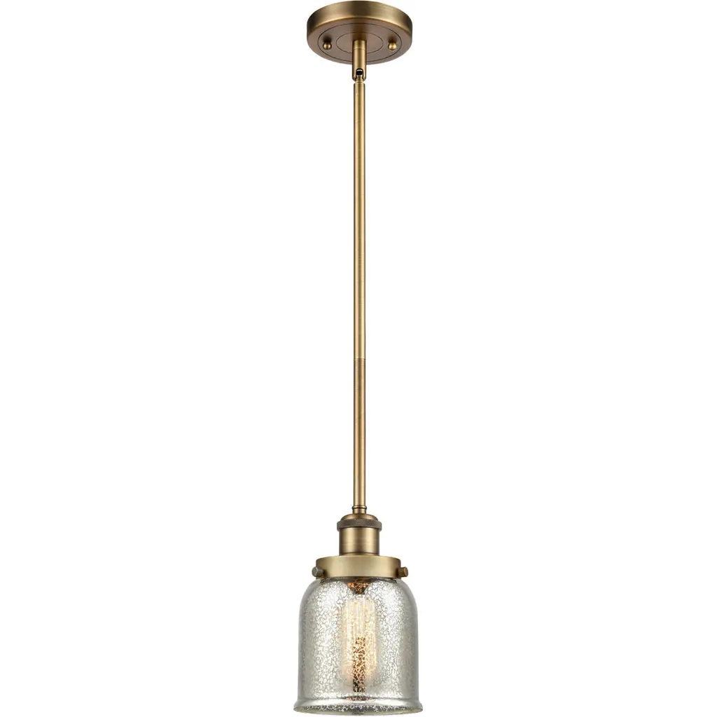 Bell 1 Light 5 Inch Satin Gold Mini Pendant Ceiling Light In Silver Plated Mercury Glass