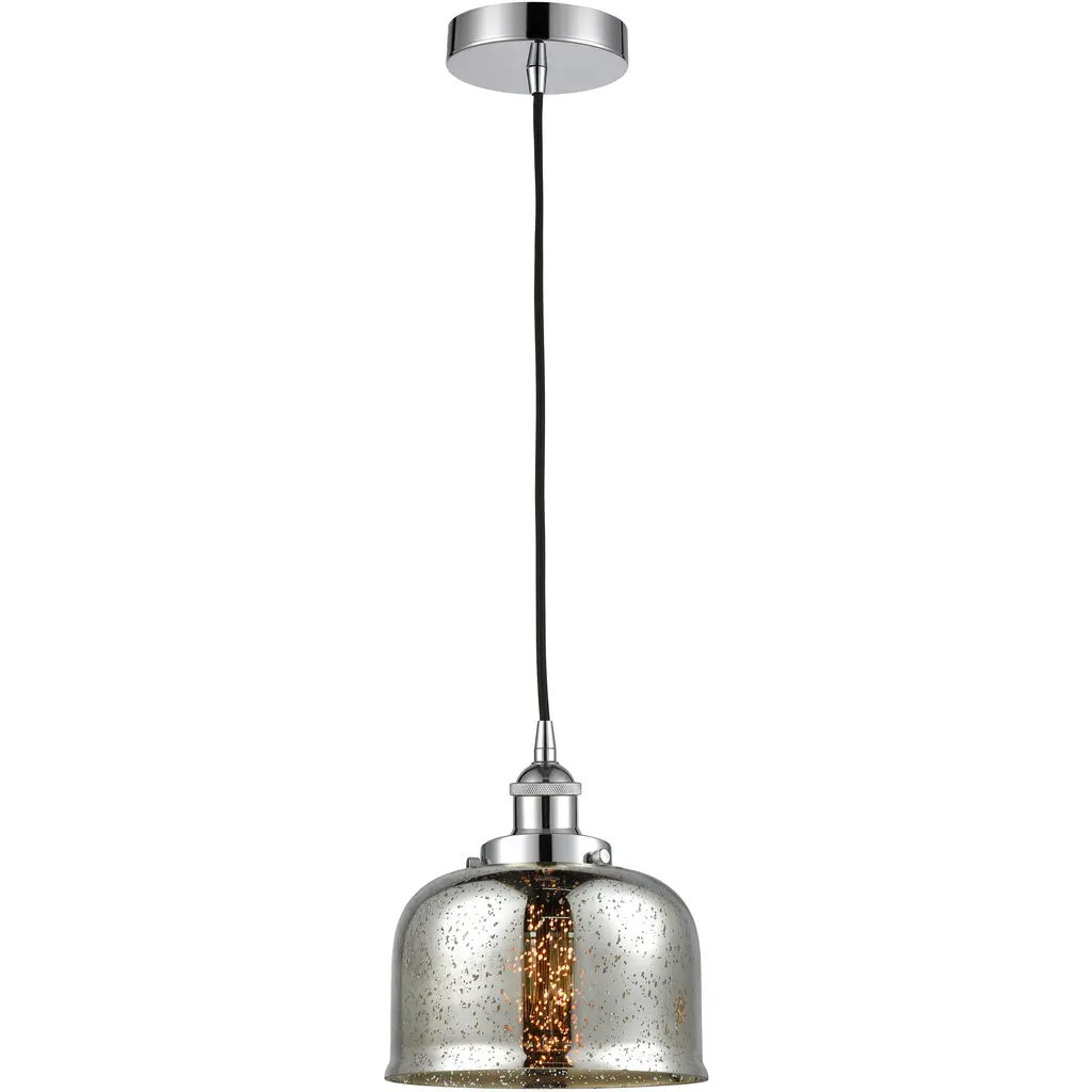 Bell 1 Light 8 Inch Brushed Satin Nickel Mini Pendant Ceiling Light In Silver Plated Mercury Glass