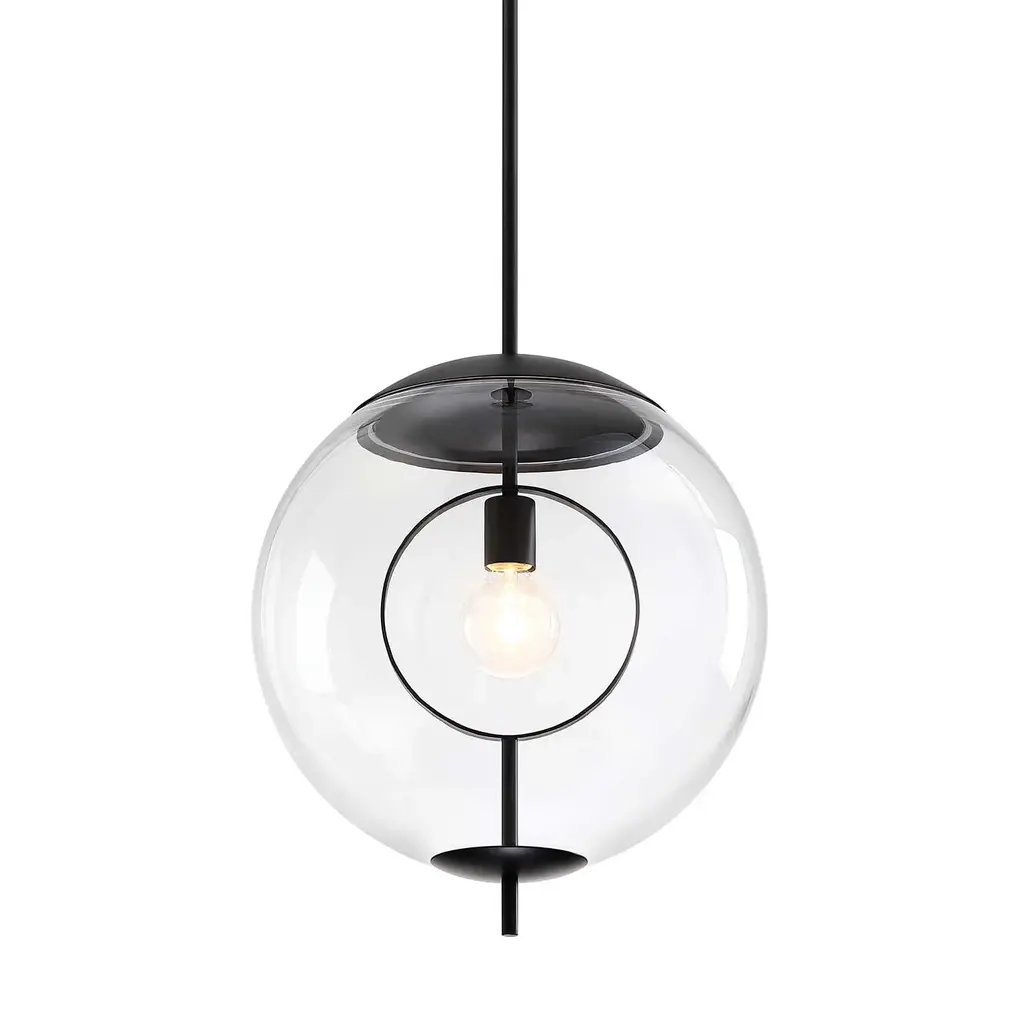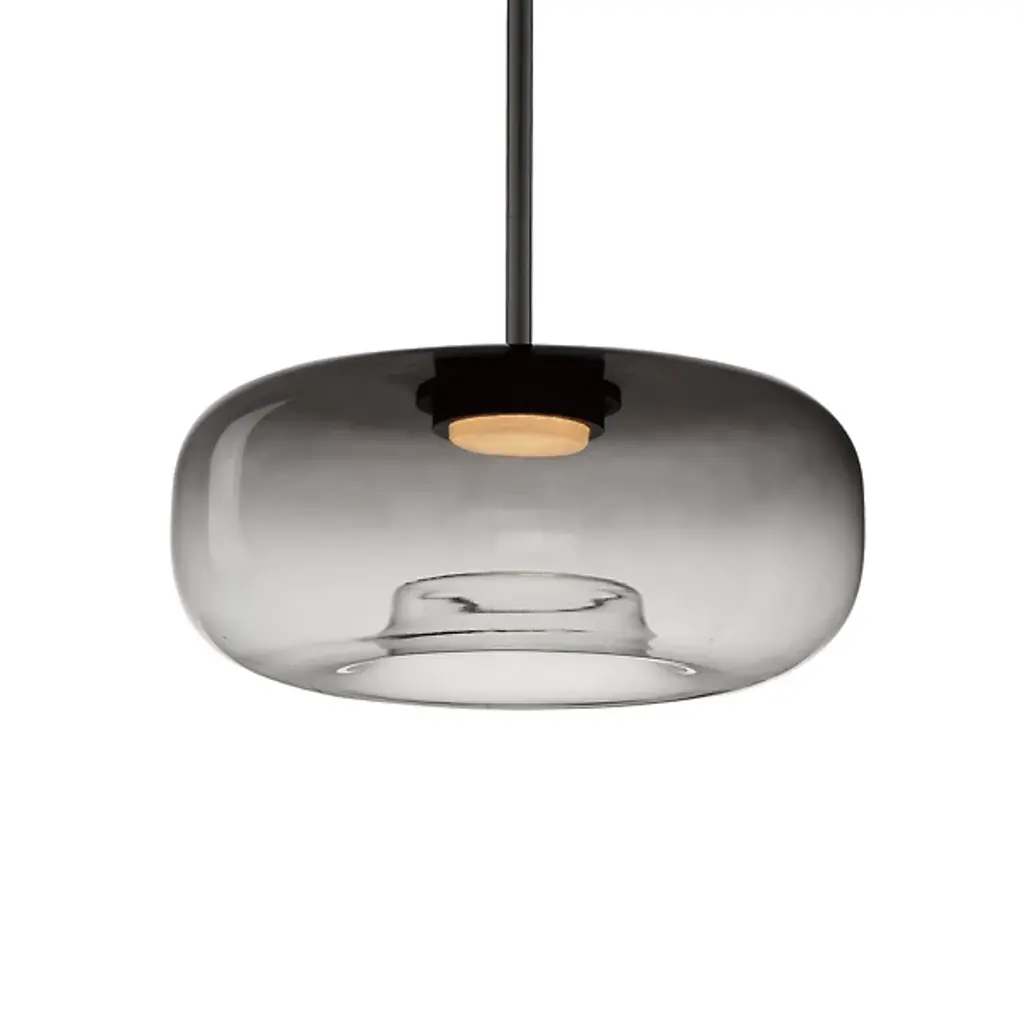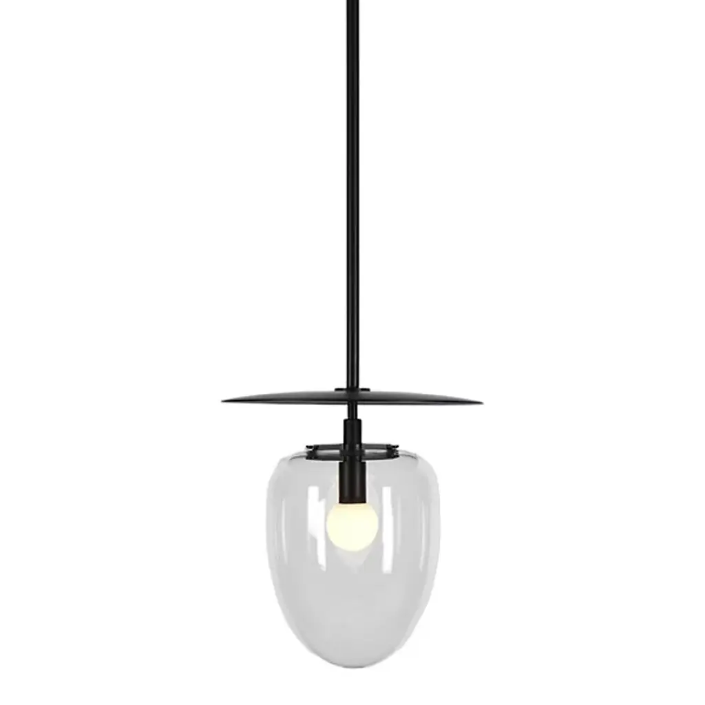The Bell LED Pendant from Roll & Hill provides a stately, retro-modern character to its surroundings. A fabulous fusion of brass and clear glass, it is designed by Post Company to call back to rustic lantern designs and descends from a strong circular canopy, transmitting a slim stem below, to a strong LED lamping set inside a rounded, clear glass shade. The slim dish-shaped accent above the lamping transmits bright light below, while the clear glass moderates bright glare into an even warmth, accompanied by a halo of radiant light.