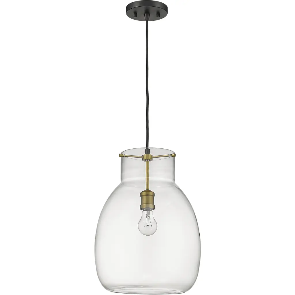 Bella 1 Light 12 Inch Matte Black And Olde Brass Pendant Ceiling Light