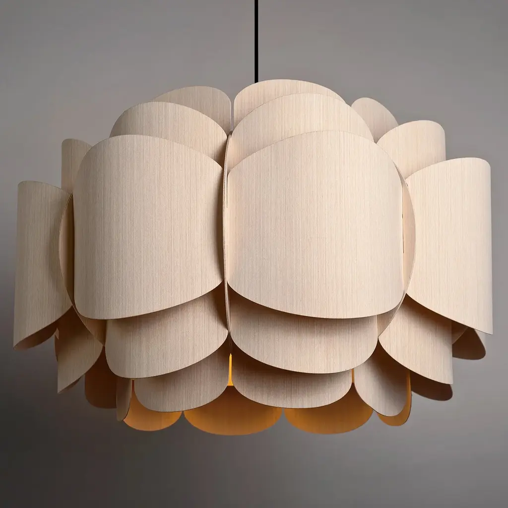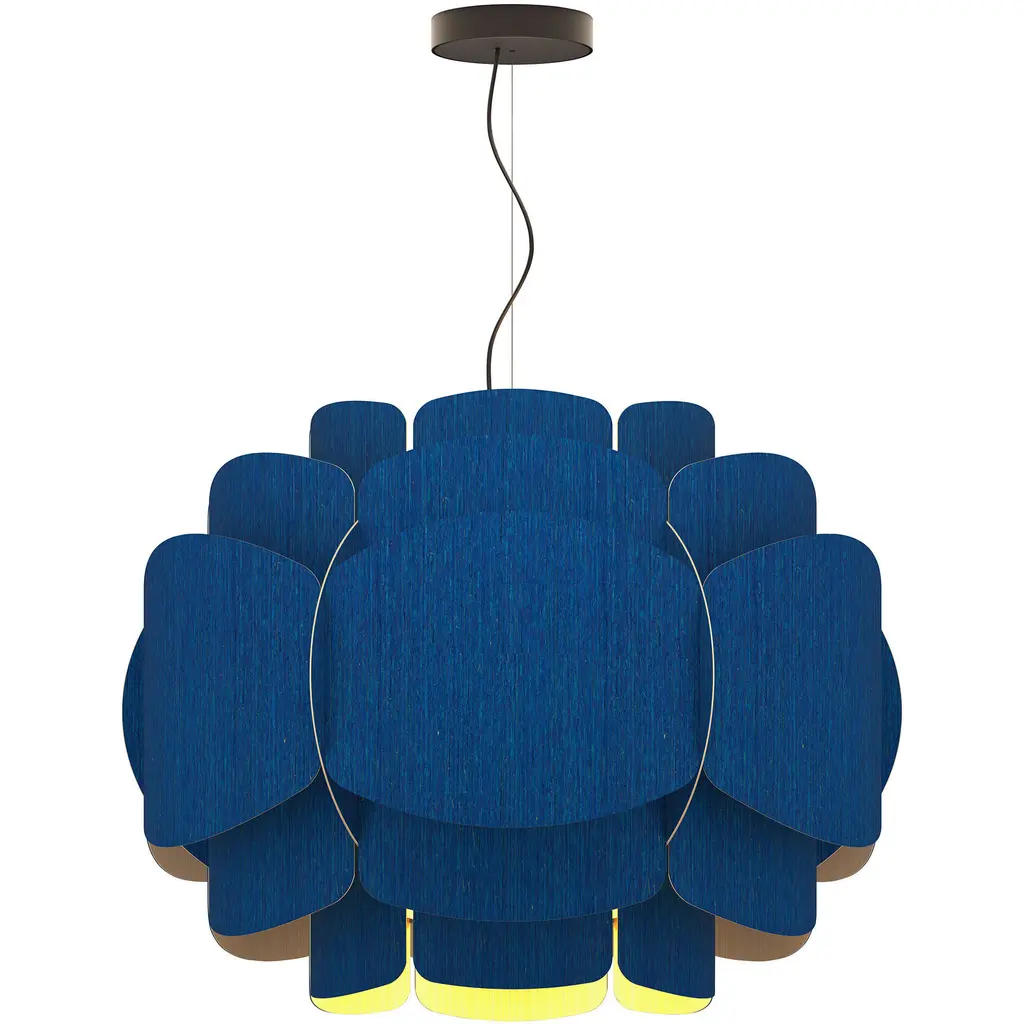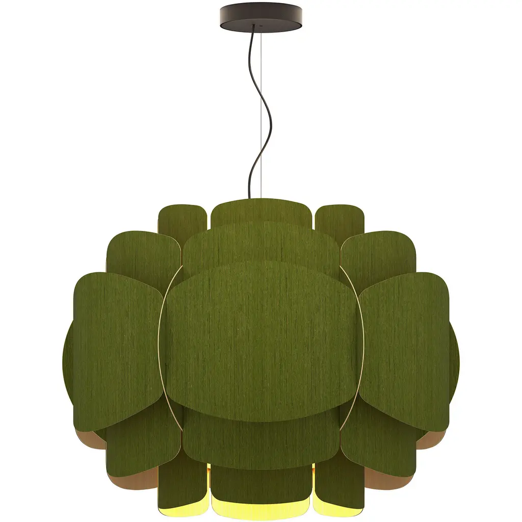 The Bella Pendant Light from Bruck Lighting exhibits a sustainable wood shade to add a natural aesthetic to your space. Colorful swirls of thin wood veneer create a visual statement highlighted by the warm glow of ambient light. The authentic wood grain is unique to each piece and every fixture’s character is nothing short of livable art. Station above a kitchen countertop or dining room table for a sculptural accent that is equal parts grounding and effervescent. Highlights