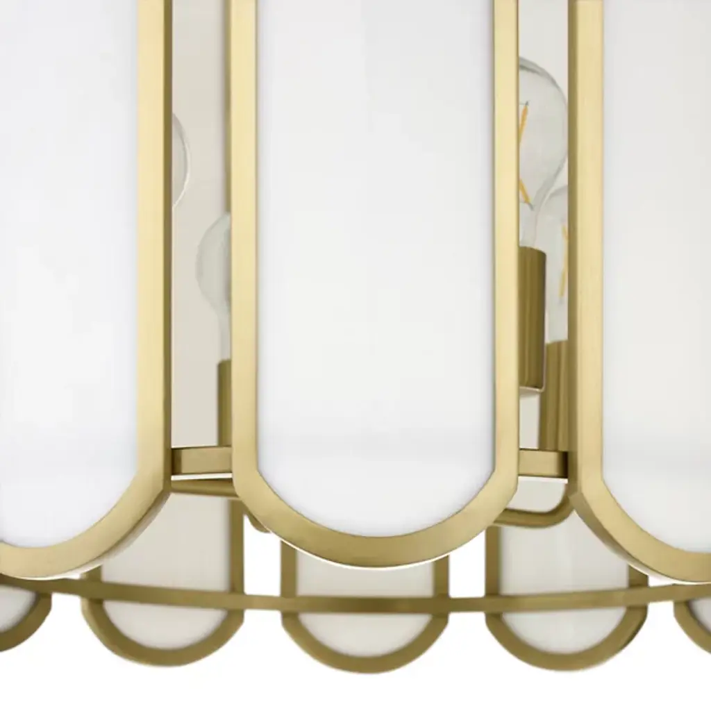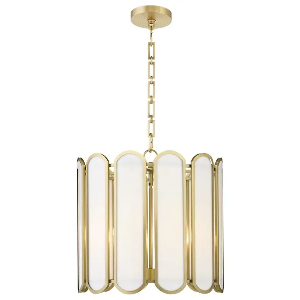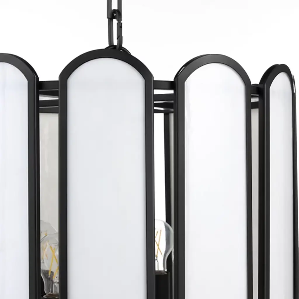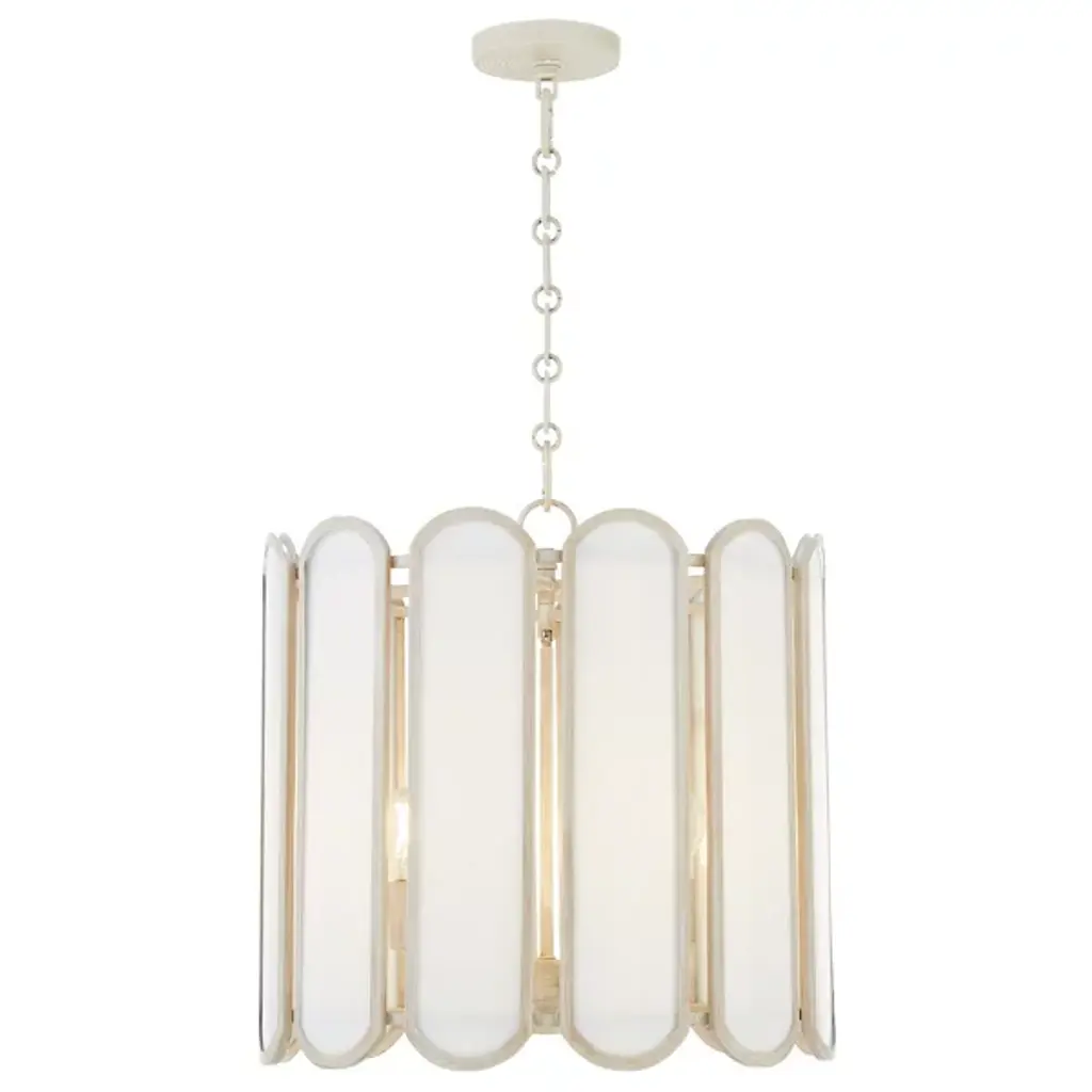 The Belleview Pendant from Quorum International reimagines Tiffany-style lighting for modern homes. Rectangular glass panels with curved ends arranged in a drum formation create fascinating light patterns across nearby surfaces. Designer Tamara Day adds her distinctive touch through a signature chain design and clover finial. Multiple light sources within extend outward from the central rod, providing both task and ambient illumination. This dimmable piece works brilliantly over dining tables or in two-story foyers where its intricate details can be fully cherished.