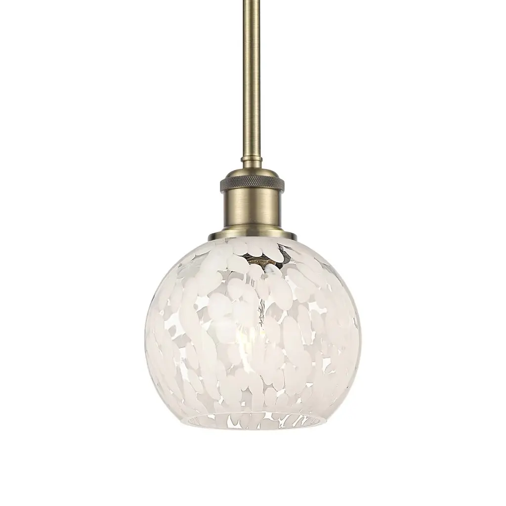 The Belleville Pendant from Hudson Valley Lighting presents an ethereal transitional presence to inside spaces. An elegant design distilled to essential elements, it descends via a linked stem from a dome-shaped canopy, terminating in damp-listed lamping placed beneath a complex, captivating shade of glossy glass etched with a winding floral pattern. The simple structure echoes the canopy, casting a mix of glinting glow and slight shadow out around the shade while dispatching a focused pool of direct light below.