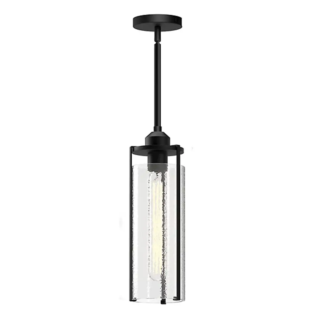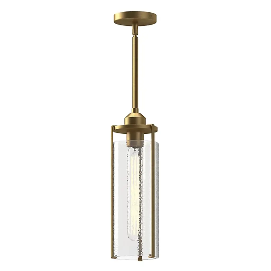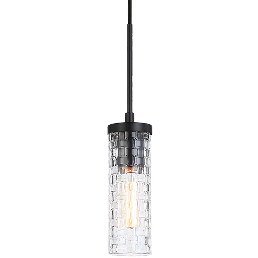 Add an elegant transitional appeal to inside spaces with the Belmont Pendant from Alora Mood. An appealingly layered design descending from a smooth disc canopy, it uses a central stem to support a close gathering of downward-facing candelabra sockets that sweep down from a round hub. Slender metal strips sweep down from the hub in even intervals, suspending a cylindrical shade of textured water glass around the lamping that gentles excess glare to the sides, transmitting a soft ambiance around a small pool of downlight.