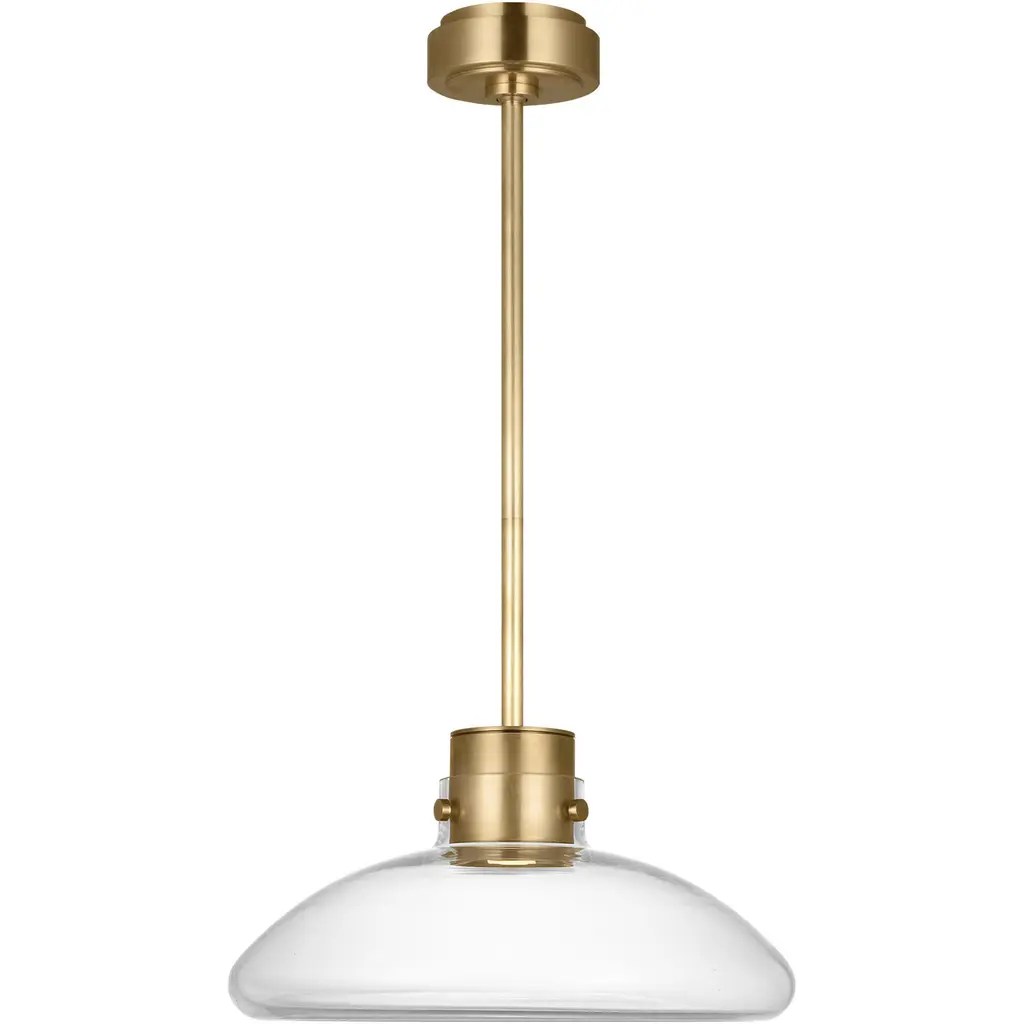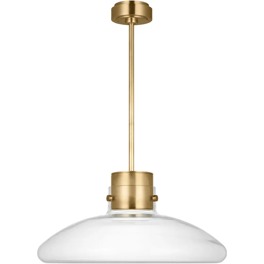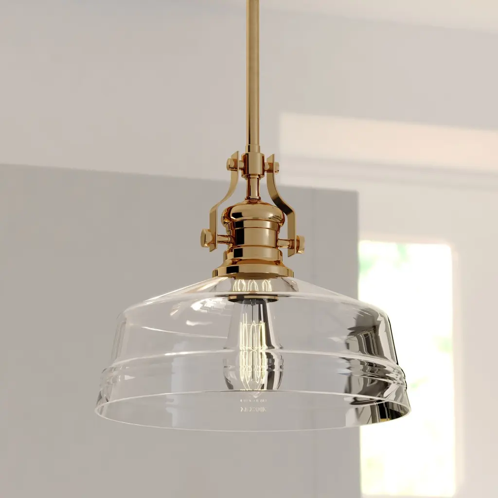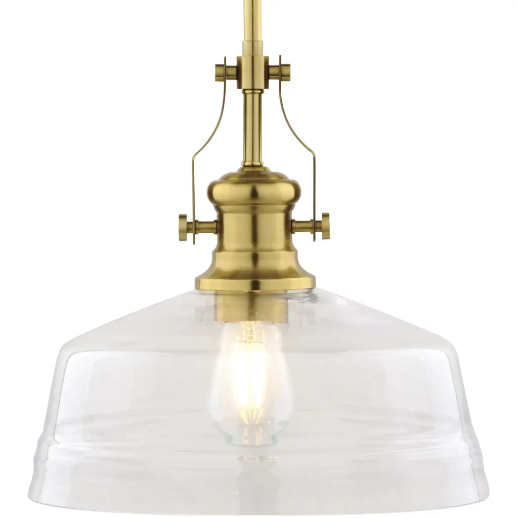 The Beloit pendant adds a welcoming and inviting feel to your kitchen or living spaces. Soft curving lines finished in brushed gold, are paired with a large clear seeded glass shade, creating a look that accents your most comfortable spaces. Combine it with a vintage Edison style filament bulb to complete the look. Bring a level of sophistication to your trendy farmhouse or urban style with this pendant.