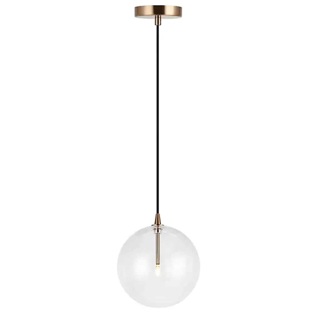 The Beniamino Pendant by Huxe has an airy, minimal appearance with just the right amount of drama. A prominent, clear globe hangs effortlessly from a slender and flexible cord that is anchored by a sleek, circular canopy. Offering a classic and contemporary feel, this is the perfect type of lighting choice to freshen up a multitude of different areas, as it can easily blend in with a multitude of color schemes and interior design choices.