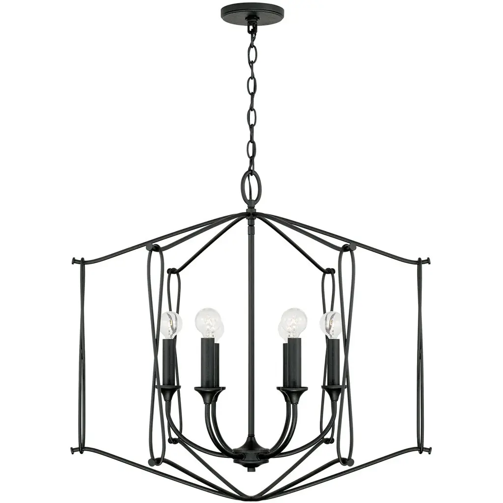 Lend a stylish note to your foyer and internal living spaces with the open lines and elegant design of the Bentley 6-Light Pendant from Capital Lighting. A stylish retro design that descends from a sleek canopy via a fine chain, it uses an oval finial and central stem to secure an open arrangement of candelabra-style lamping inside a swooping and swirling frame arrangement. The light blazes out, open and unrestricted, gleaming off the matte finish and spreading out a bright and wash of light in all directions.