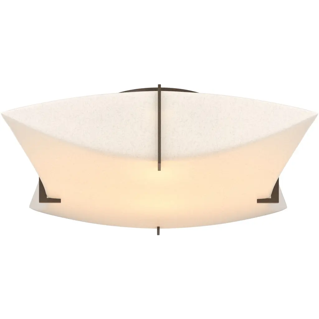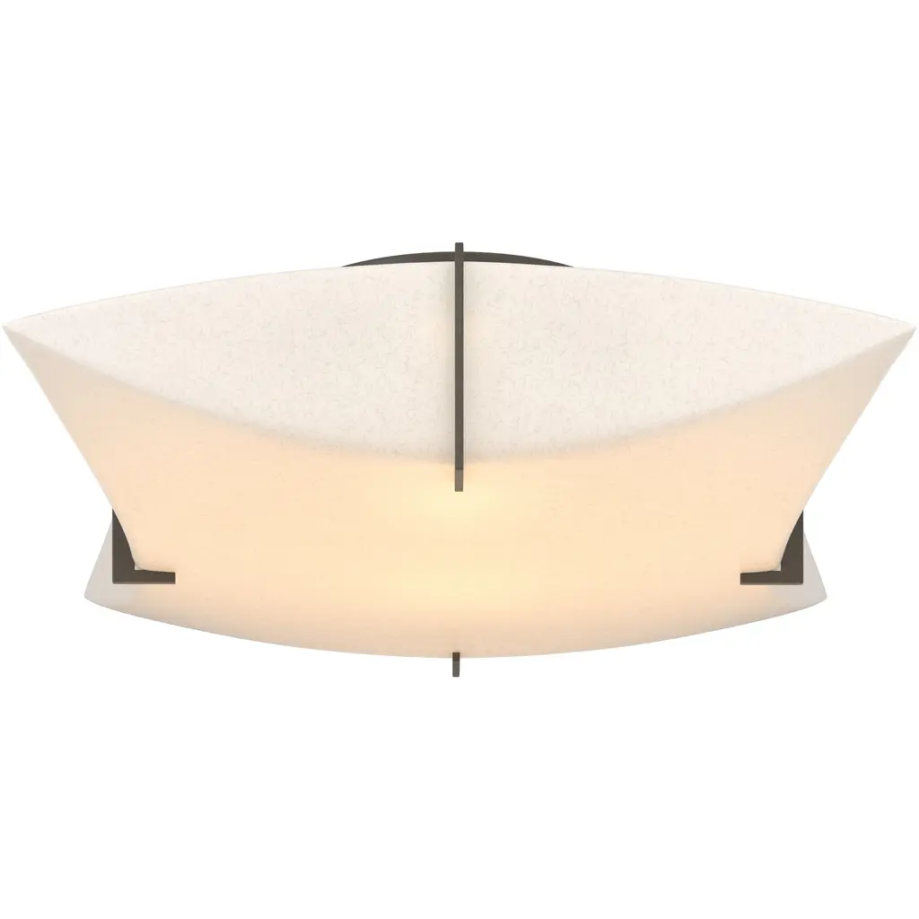 The Bento Semi-Flushmount from Hubbardton Forge is a classic, hand-crafted contemporary fixture, capable of adding a refreshing new touch to an interior space. Combines modern materials with an organic, natural form which results in a ceiling light that is just as decorative when it is switched off. This piece looks great in hallways, kitchens, living rooms, and bedrooms. Suitable for damp locations, including bathrooms without direct water exposure. This piece is hand-crafted by artisans in Vermont.