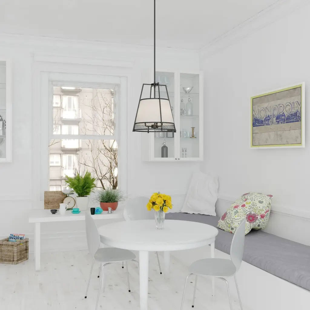 The Benton says chic like no other. The white linen fabric shade is nestled within a four-sided matte black frame and finished with metal netting below. The diffusion of the soft light does not stop it from making a bold style statement. A Benton ceiling pendant light is the perfect addition to any dining, kitchen or living space.