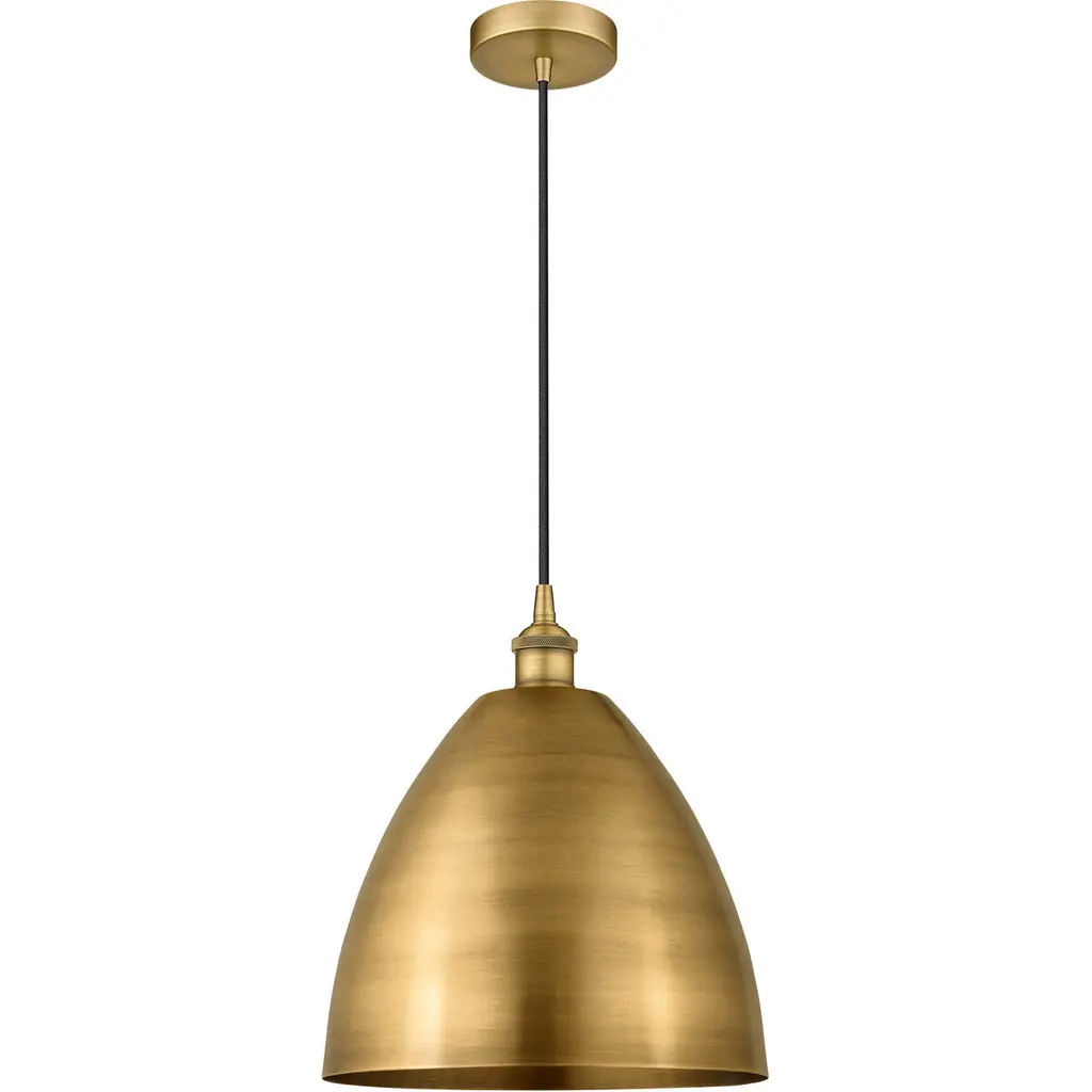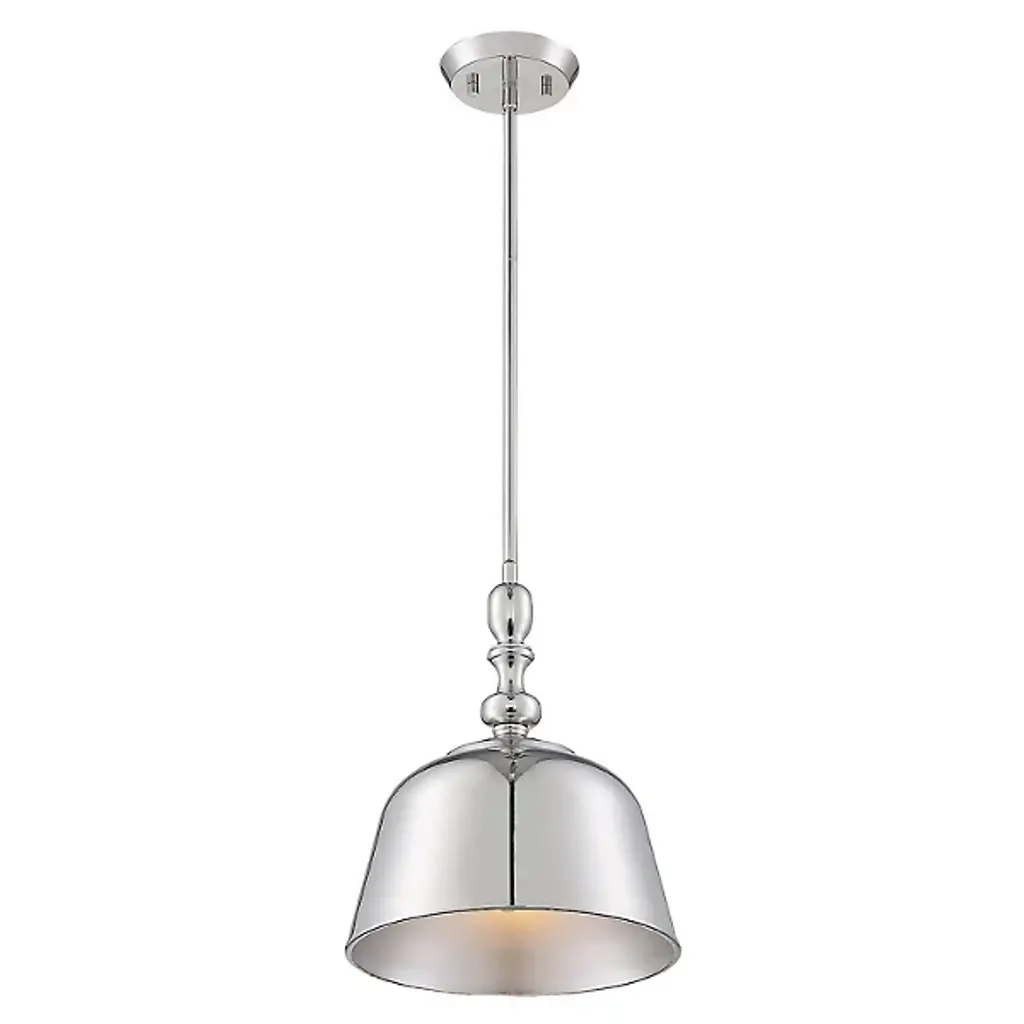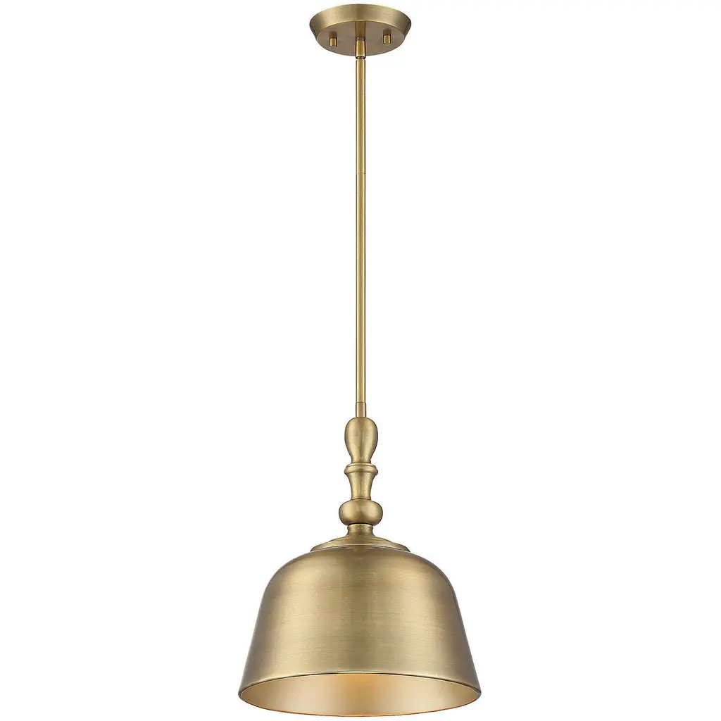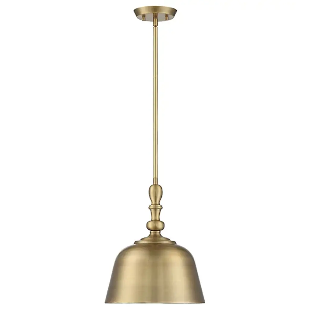 With a bold, industrial look, the Berg Pendant by Savoy House makes a handsome statement in the rooms it brightens. A simple, smooth, and curved silhouette adds a graceful touch to an oversized metal shade as it shapes an even, welcoming layer of downcast light onto surroundings. Adding some flair to this clean design, the top of this shade has a softly turned look, like an elegant candlestick, accenting it with additional charm.
