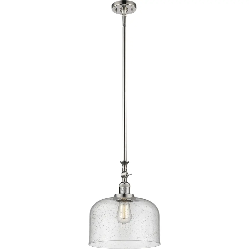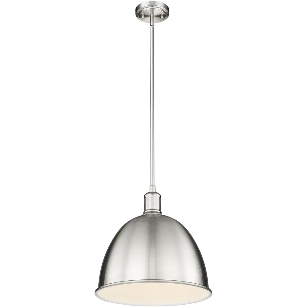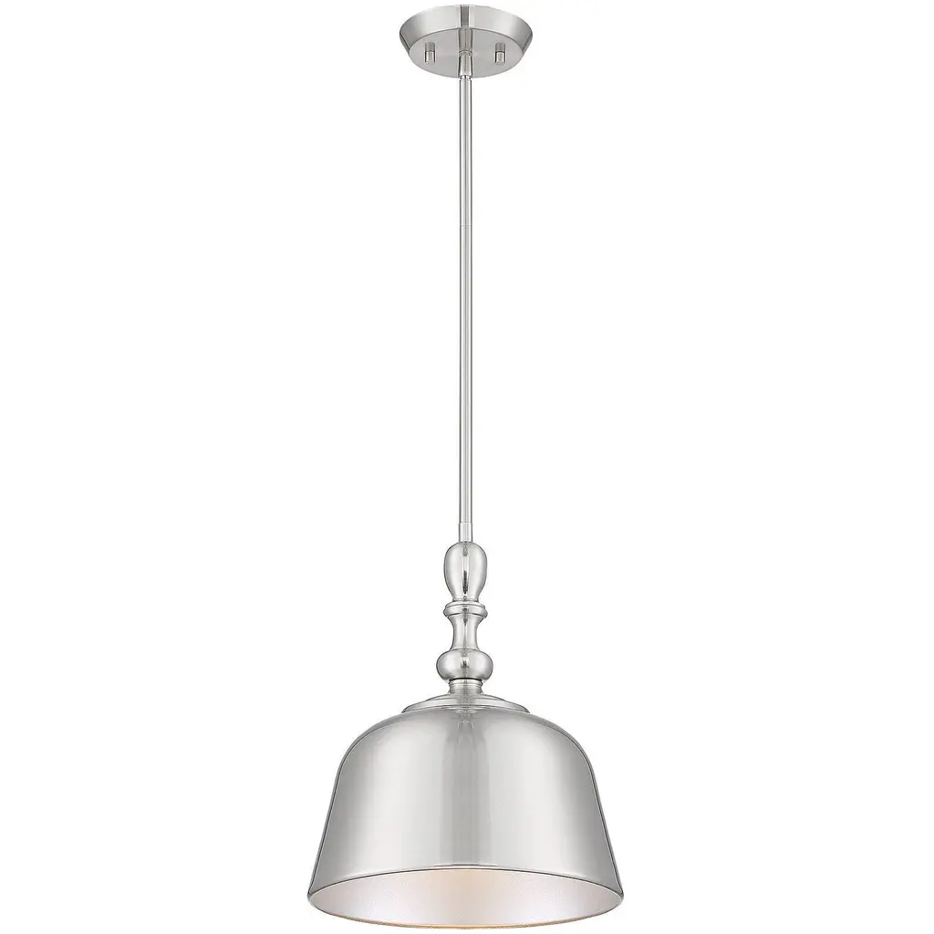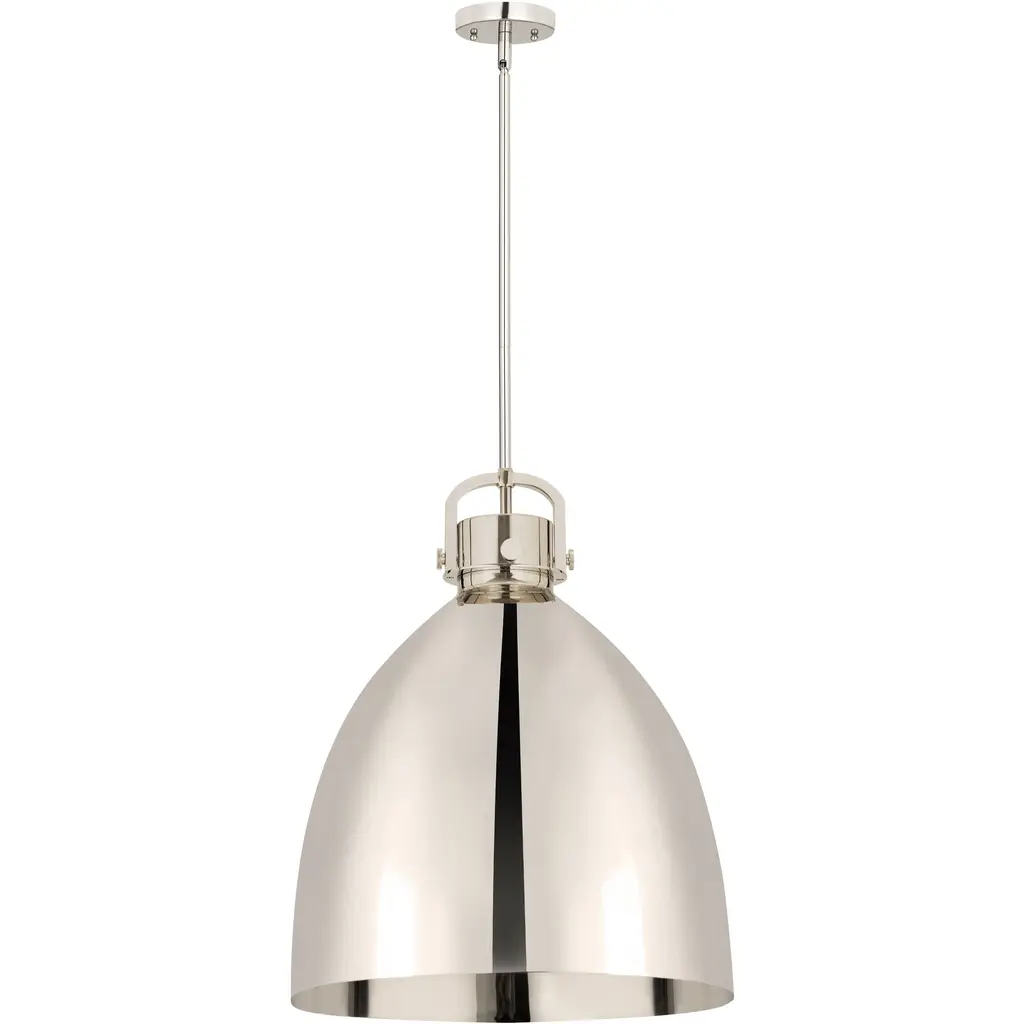 With a bold, industrial look, the Berg Pendant by Savoy House makes a handsome statement in the rooms it brightens. A simple, smooth, and curved silhouette adds a graceful touch to an oversized metal shade as it shapes an even, welcoming layer of downcast light onto surroundings. Adding some flair to this clean design, the top of this shade has a softly turned look, like an elegant candlestick, accenting it with additional charm.