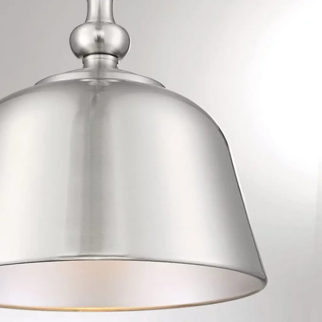 With a bold, industrial look, the Berg Pendant by Savoy House makes a handsome statement in the rooms it brightens. A simple, smooth, and curved silhouette adds a graceful touch to an oversized metal shade as it shapes an even, welcoming layer of downcast light onto surroundings. Adding some flair to this clean design, the top of this shade has a softly turned look, like an elegant candlestick, accenting it with additional charm.