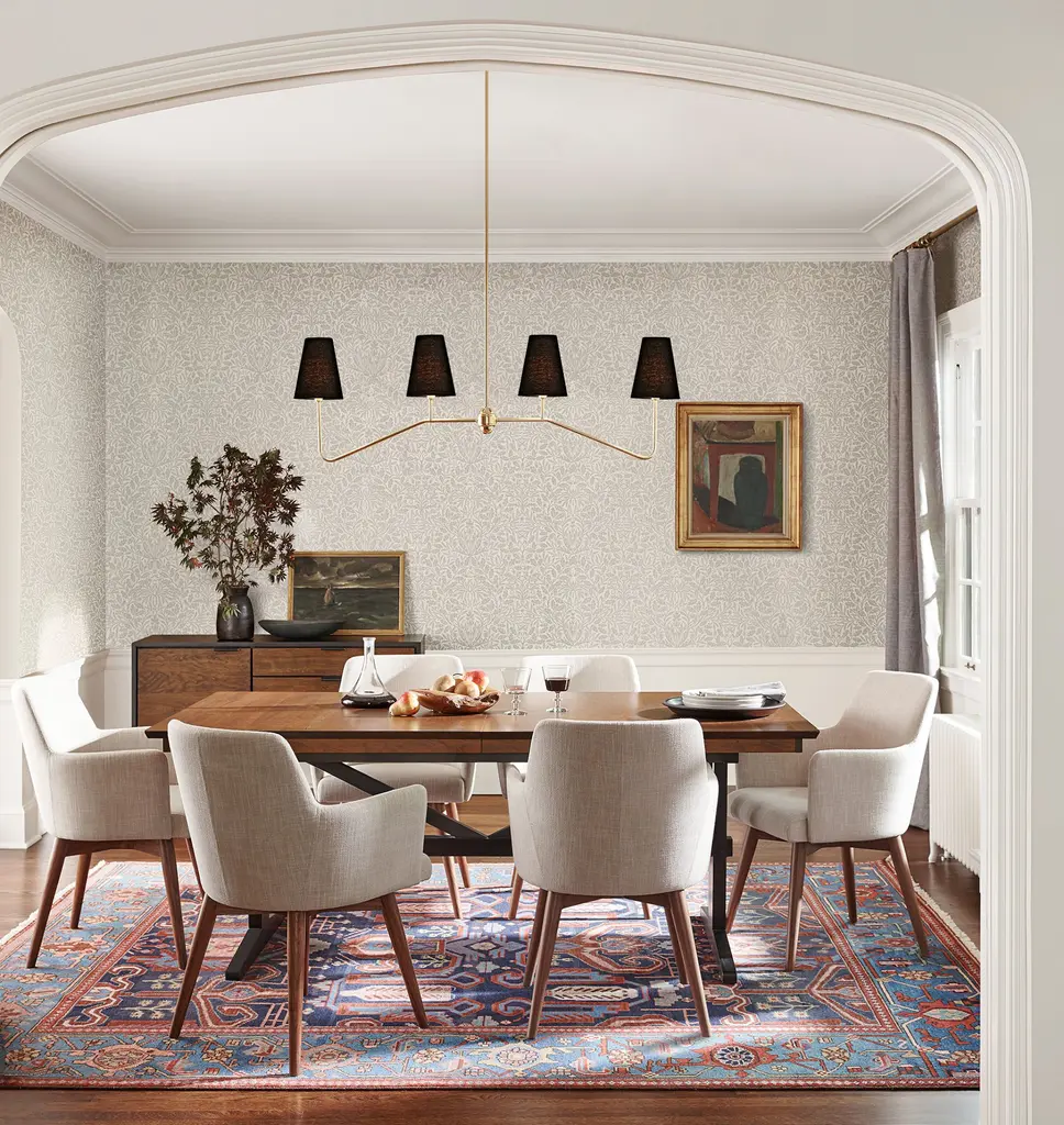 An updated take on traditional American Colonial design, Berkshire features elegant candlestick arms and linen shades.