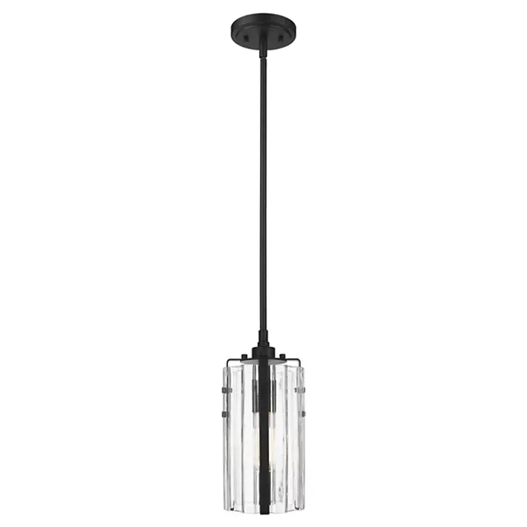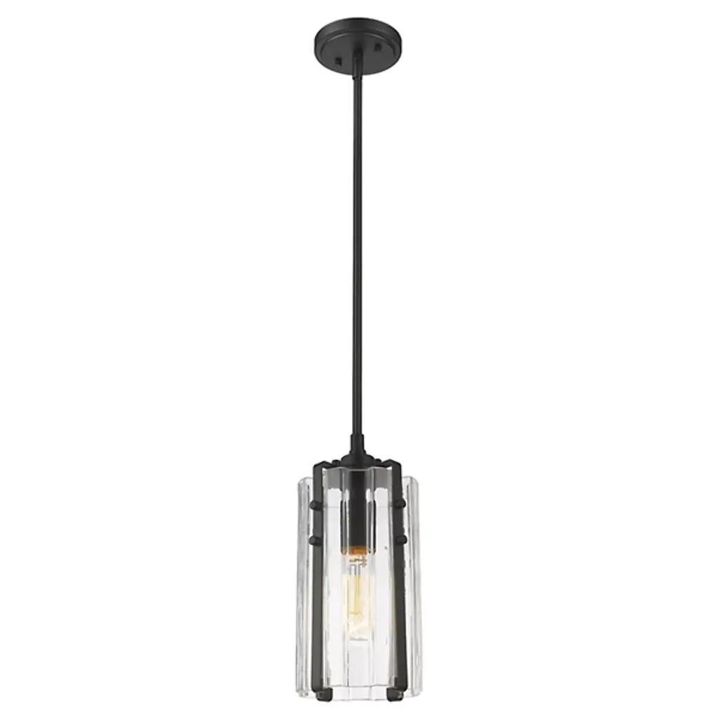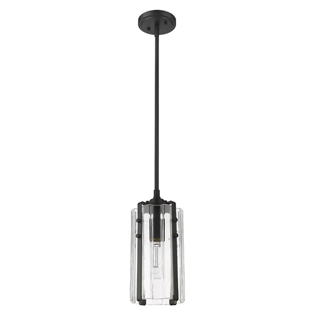 The Berta Mini Pendant from Alder & Ore features a streamlined steel framework. An elegant, cylindrical shade of clear glass is enveloped by this frame, creating a visual intrigue. Suspended gracefully by a downrod, Berta effortlessly balances form and function. Illuminated by an LED from overhead, it exudes a transitional aesthetic while bringing enhanced visibility to your interior space. Easily soften the pendant’s brightness by using a separately sold ELV dimmer.