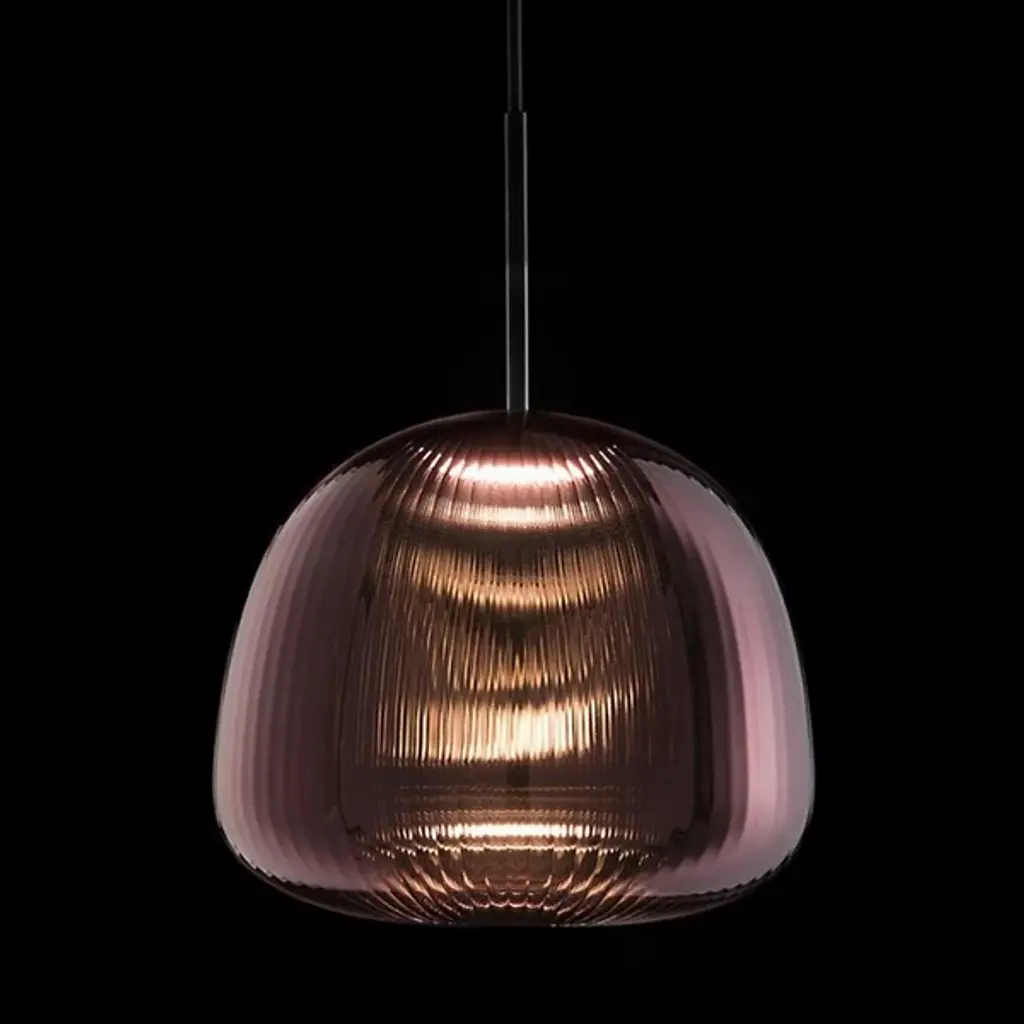 The Bes LED Pendant by Melogranoblu is a beautiful, handblown-glass design made in Italy and created by Ermanno Rocchi and Massimo Crema. Bearing the name of an ancient divinity that was known as the protector of households, this pendant brings a welcoming layer of illumination to its surroundings, filtering light through thin lines set within its form that create a pleated effect. This textured look dresses up the soft, simple silhouette of this design, bringing an elegant touch to its artful, glass build and making it a lovely addition to spaces.