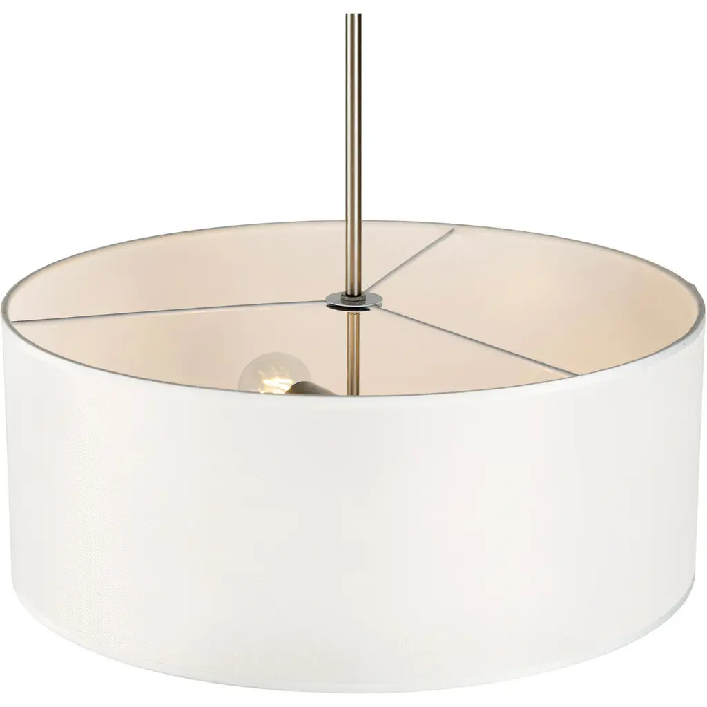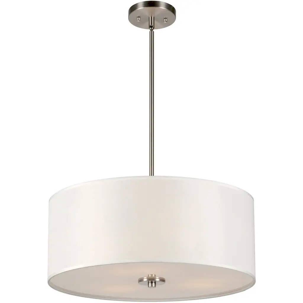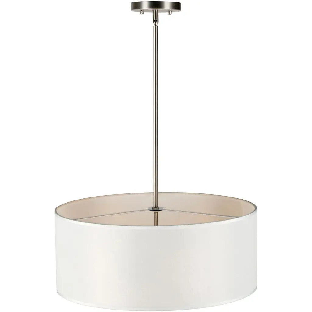 3-Light Brushed Nickel Drum Shade Pendant with Fabric Shade