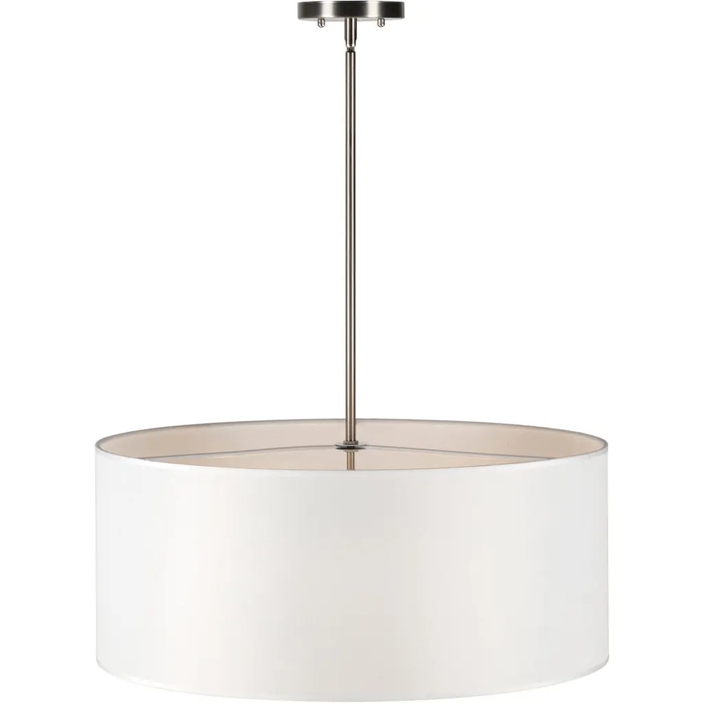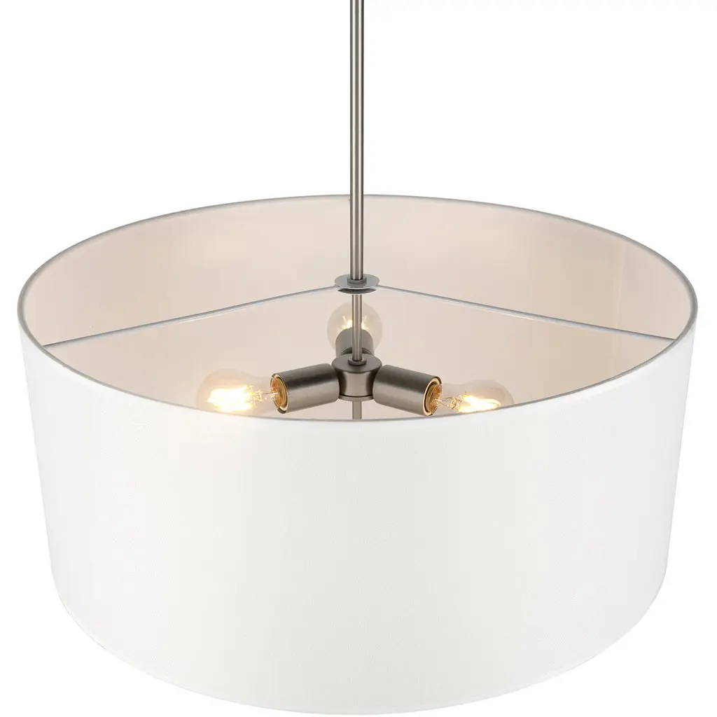 3-Light Brushed Nickel Drum Shade Pendant with Fabric Shade
