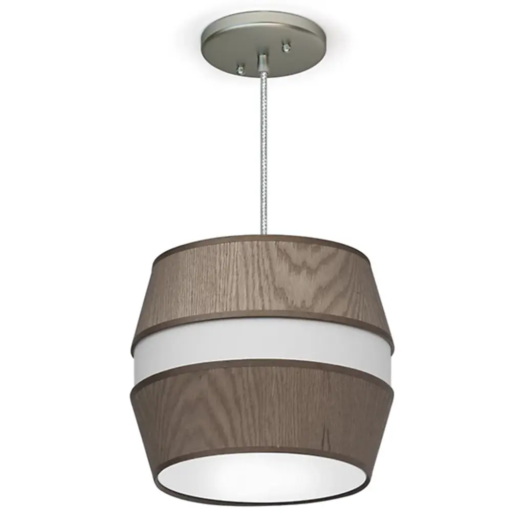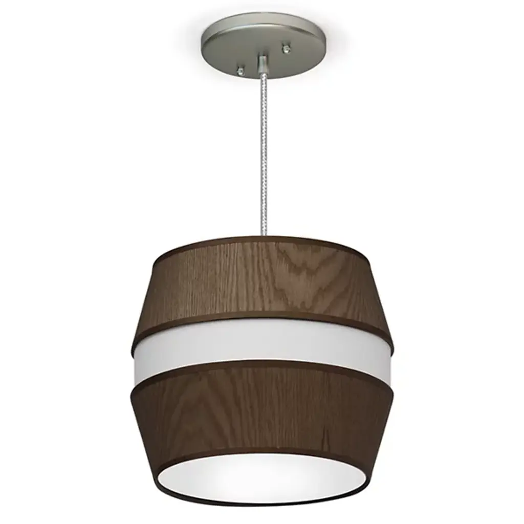 The Bev Pendant from Seascape Lamps creates visual tension through material contrast. A wood veneer layer wraps around a white inner shade, merging natural and refined elements into one cohesive form. The tapered cone shape narrows at the bottom, directing light downward while still allowing it to filter through the sides. A bottom diffuser prevents direct views of the light source, ensuring comfortable illumination. This mid-century inspired pendant works beautifully over dining tables, kitchen islands, or grouped in multiples above longer counters.