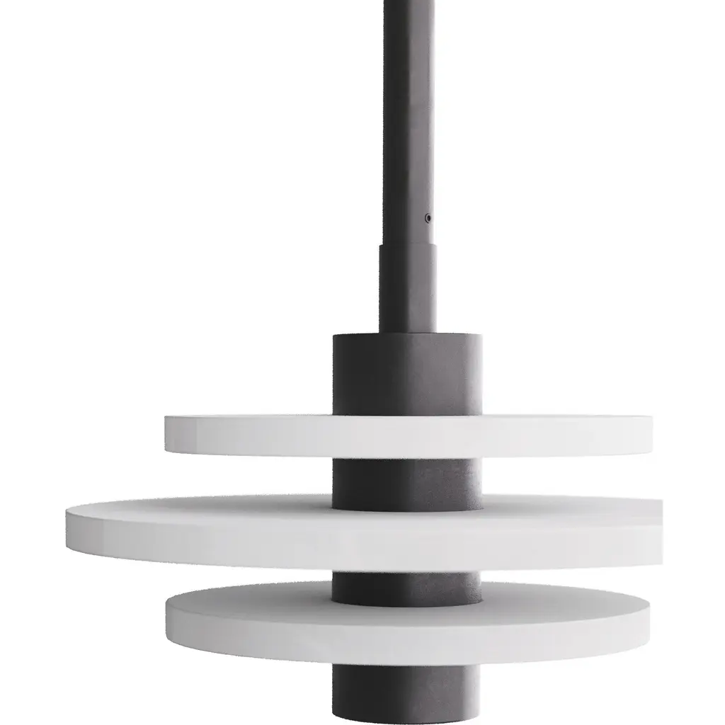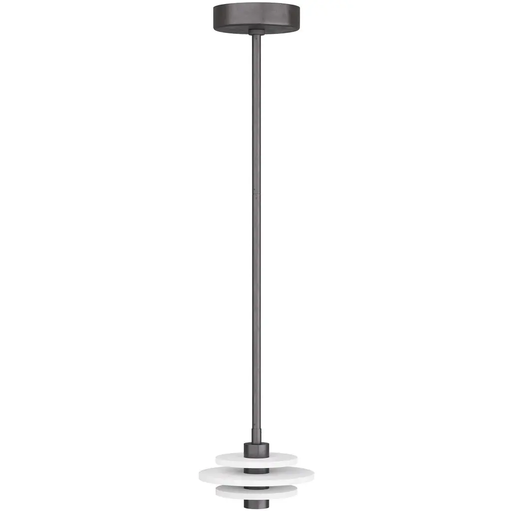 The simple forms of Elementalism provoked the design of the Bevins. Stacked rings of white alabaster are pierced by the support of an English bronze finished iron pipe. Integrated LED provides a rich glow through each ring of alabaster. Damp-rated, although limited covered outdoor conditions may affect finish. Finish will vary.