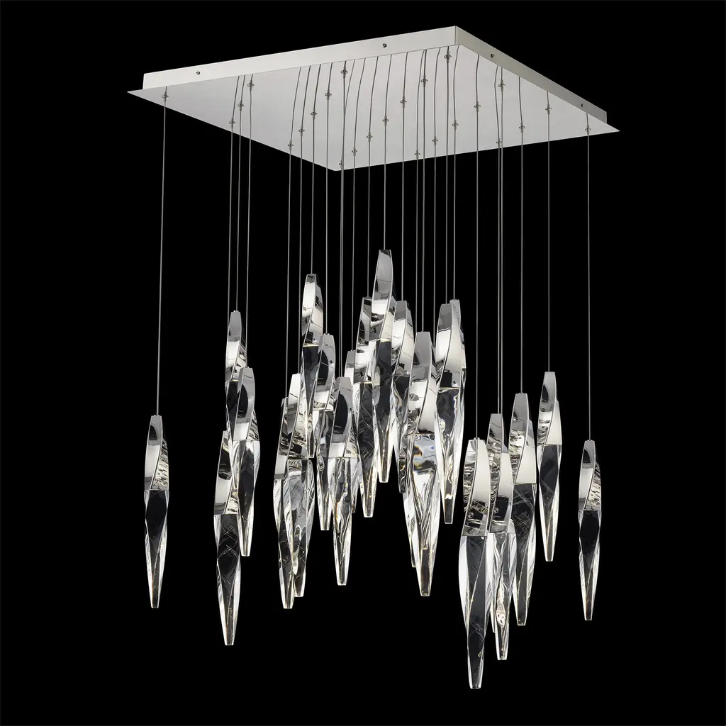 Beyond Kindjal Led 28 Inch Polished Nickel Multi-Light Pendant Ceiling Light, Square Canopy