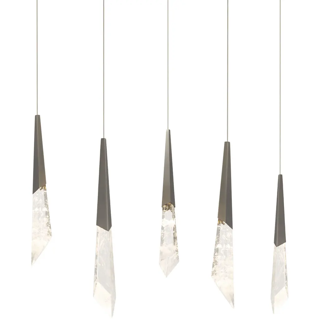 Wall Fixture A subtle twist of luxe. Kindjal features exquisite optic crystal icicle that twists to a point from a cohesive metal casting that conceals powerful LEDs that provides ample illumination. Stylish, textured materiality. Pendant A subtle twist of luxe. Kindjal is an exquisite optic crystal icicle that twists to a point from a cohesive metal fitting that concealse a powerful LED that provides ample downlighting. Stylish, textured materiality.