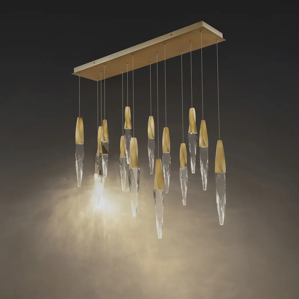 Wall Fixture A subtle twist of luxe. Kindjal features exquisite optic crystal icicle that twists to a point from a cohesive metal casting that conceals powerful LEDs that provides ample illumination. Stylish, textured materiality. Pendant A subtle twist of luxe. Kindjal is an exquisite optic crystal icicle that twists to a point from a cohesive metal fitting that concealse a powerful LED that provides ample downlighting. Stylish, textured materiality.