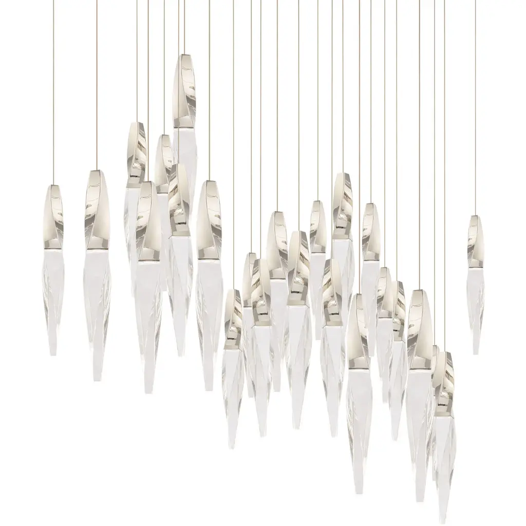 Wall Fixture A subtle twist of luxe. Kindjal features exquisite optic crystal icicle that twists to a point from a cohesive metal casting that conceals powerful LEDs that provides ample illumination. Stylish, textured materiality. Pendant A subtle twist of luxe. Kindjal is an exquisite optic crystal icicle that twists to a point from a cohesive metal fitting that concealse a powerful LED that provides ample downlighting. Stylish, textured materiality.