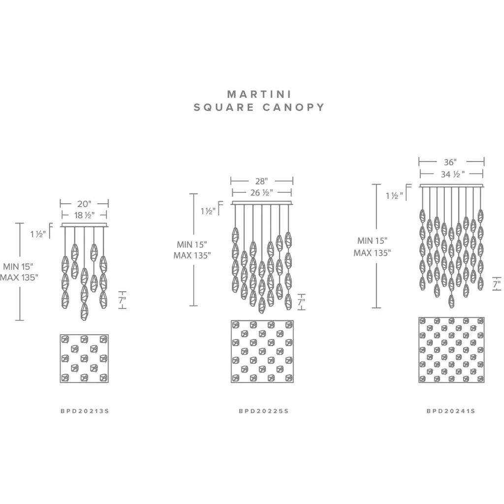 Beyond Martini Led 28 Inch Aged Brass Multi-Light Pendant Ceiling Light In Optic Haze, Square Canopy