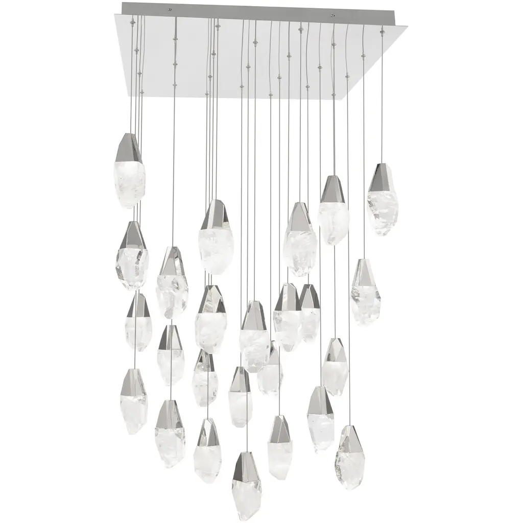Multi Lights A shower of jewels. Suspended in mid-air, Schonbek optic or optic haze crystal elements composed of natural quartz gemstone illuminate at varying heights to entice. Cascading from above and perfectly designed for over breakfast tables or nightstands in a bedroom to make a powerful but elegant statement. Mini Pendant Suspended in mid-air, a jewel of Schonbek optic or optic haze crystal composed of natural quartz gemstone illuminates to entice. The chiseled metal fitting is congruent with the faceted crystal to confer elegance in design continuity.