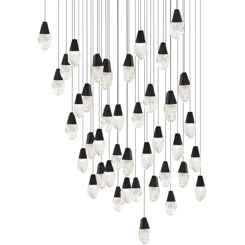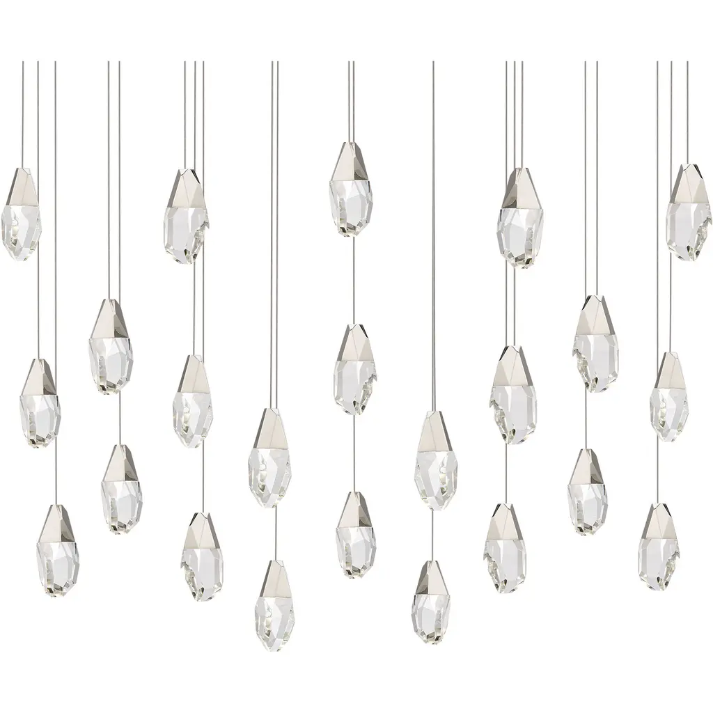 Multi Lights A shower of jewels. Suspended in mid-air, Schonbek optic or optic haze crystal elements composed of natural quartz gemstone illuminate at varying heights to entice. Cascading from above and perfectly designed for over breakfast tables or nightstands in a bedroom to make a powerful but elegant statement. Mini Pendant Suspended in mid-air, a jewel of Schonbek optic or optic haze crystal composed of natural quartz gemstone illuminates to entice. The chiseled metal fitting is congruent with the faceted crystal to confer elegance in design continuity.