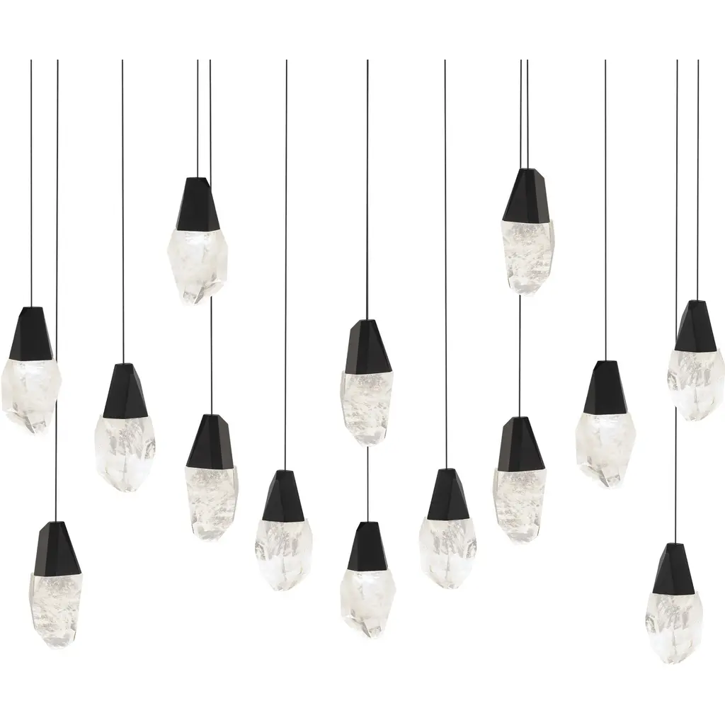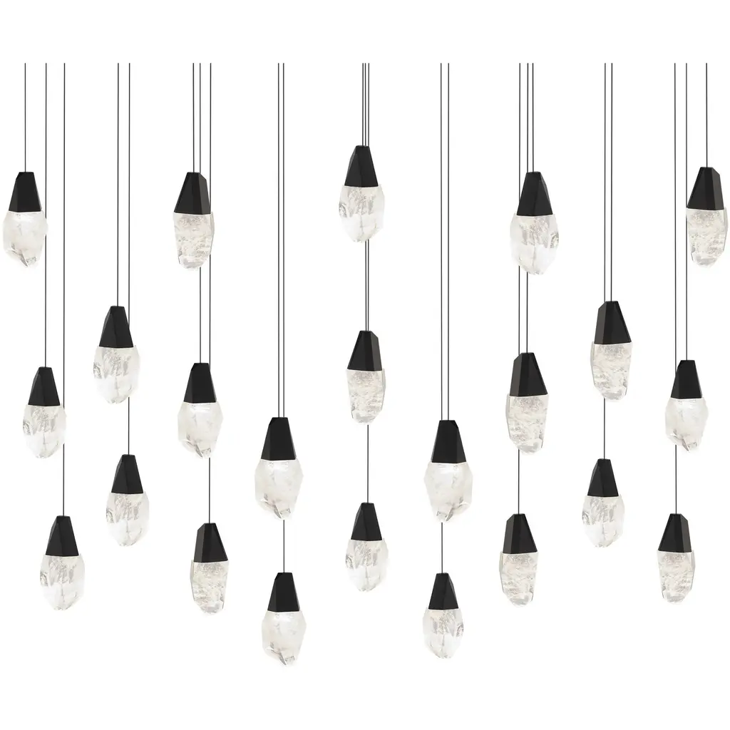 Multi Lights A shower of jewels. Suspended in mid-air, Schonbek optic or optic haze crystal elements composed of natural quartz gemstone illuminate at varying heights to entice. Cascading from above and perfectly designed for over breakfast tables or nightstands in a bedroom to make a powerful but elegant statement. Mini Pendant Suspended in mid-air, a jewel of Schonbek optic or optic haze crystal composed of natural quartz gemstone illuminates to entice. The chiseled metal fitting is congruent with the faceted crystal to confer elegance in design continuity.