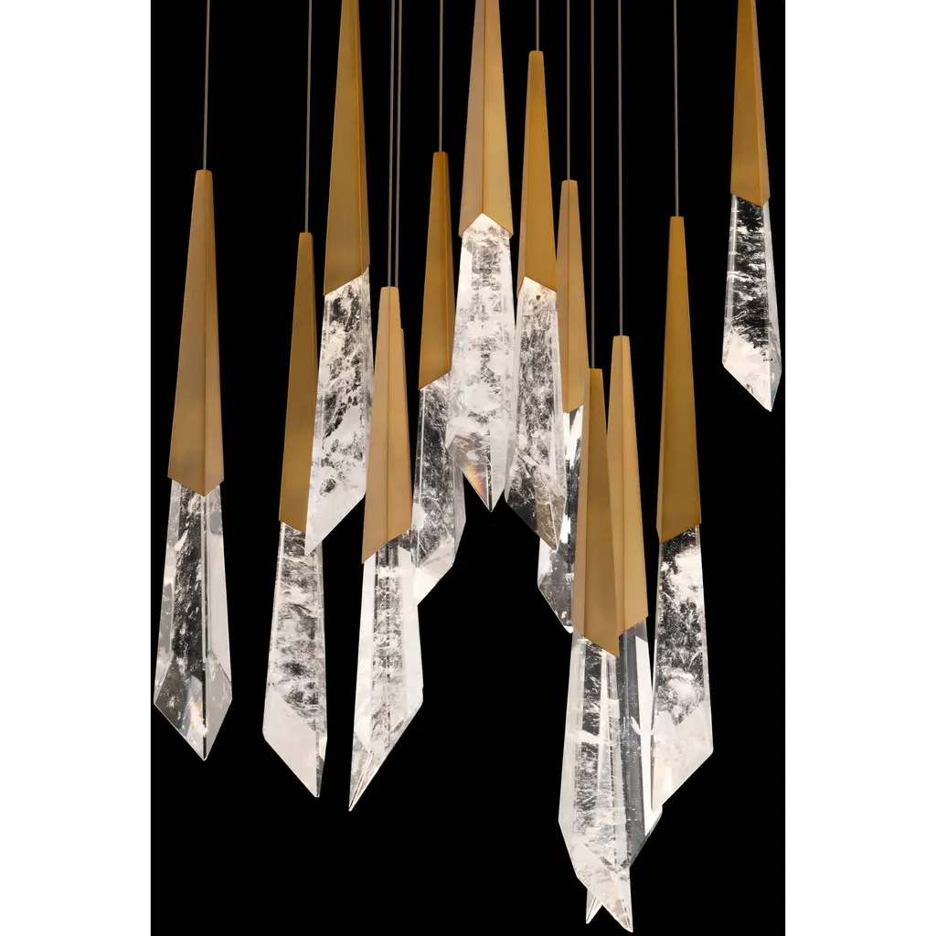 A dramatic character you can't help but fall in love with. The Solitude chandelier features Schonbek optic haze crystal composed of natural quartz gemstone that illuminates and gravitates. Crystal spears juxtapose heroically with bolts of luminous energy.