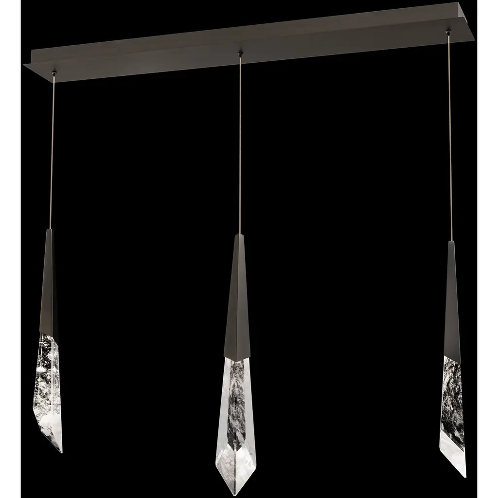 A dramatic character you can't help but fall in love with. The Solitude chandelier features Schonbek optic haze crystal composed of natural quartz gemstone that illuminates and gravitates. Crystal spears juxtapose heroically with bolts of luminous energy.