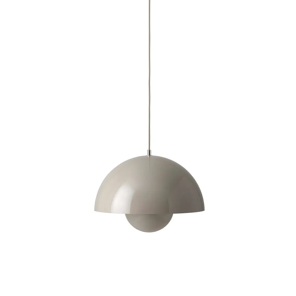 More than twice the size of the VP1, this pendant is exactly as its name states: big. Like its little sibling, the VP2 is made up of 2 semi-circular facing spheres—the upper sphere twice as large as the lower one. The late, great Verner Panton believed in the possibility of a happier, brighter future, and designed with this in mind. The visionary Dane was the first to do inflatable furniture, cardboard houses and single-form, injection-molded plastic chairs—and all with an optimistic nod. Those chairs appeared in Stanley Kubrick's 1968 masterpiece 2001: A Space Odyssey; the same year experienced revolutions in the streets of Paris, Rome and the U.S. celebrating change by a generation fueled on Flower Power and a new outlook on the world. Verner marked it all the next year with the FlowerPot collection of table and pendant lights. Spherical, bold and modern, they are as fresh looking now as they were in 1969. No wonder Copenhagen house &Tradition decided to reissue them.