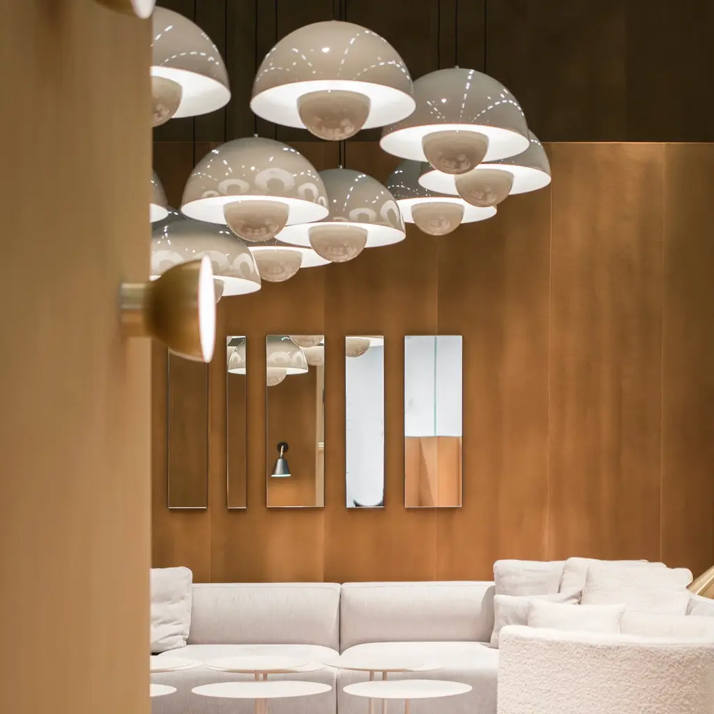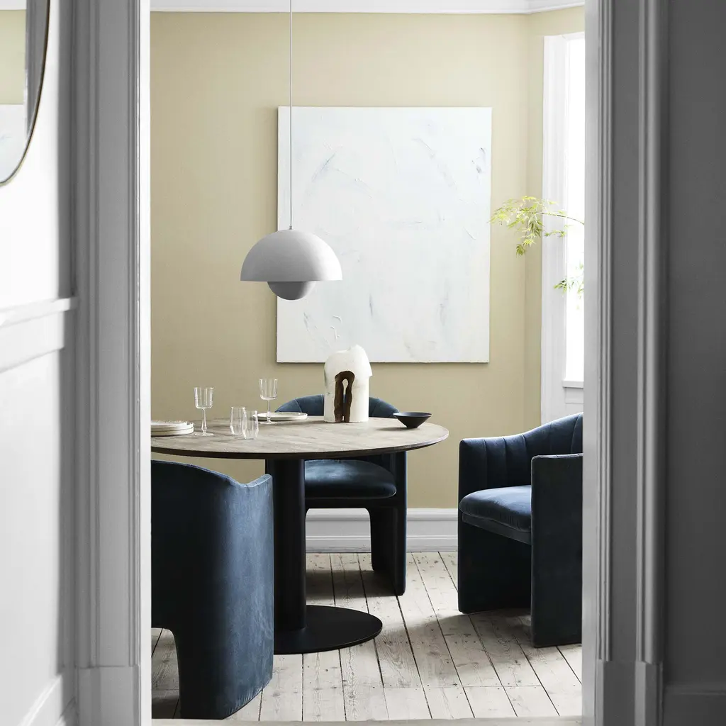 More than twice the size of the VP1, this pendant is exactly as its name states: big. Like its little sibling, the VP2 is made up of 2 semi-circular facing spheres—the upper sphere twice as large as the lower one. The late, great Verner Panton believed in the possibility of a happier, brighter future, and designed with this in mind. The visionary Dane was the first to do inflatable furniture, cardboard houses and single-form, injection-molded plastic chairs—and all with an optimistic nod. Those chairs appeared in Stanley Kubrick's 1968 masterpiece 2001: A Space Odyssey; the same year experienced revolutions in the streets of Paris, Rome and the U.S. celebrating change by a generation fueled on Flower Power and a new outlook on the world. Verner marked it all the next year with the FlowerPot collection of table and pendant lights. Spherical, bold and modern, they are as fresh looking now as they were in 1969. No wonder Copenhagen house &Tradition decided to reissue them.