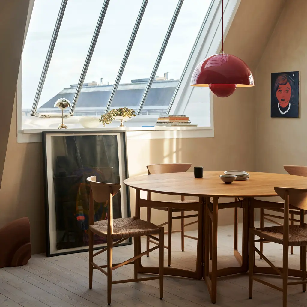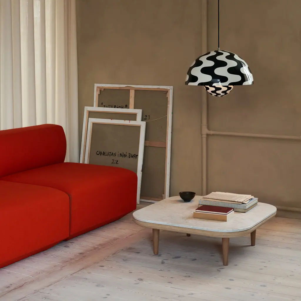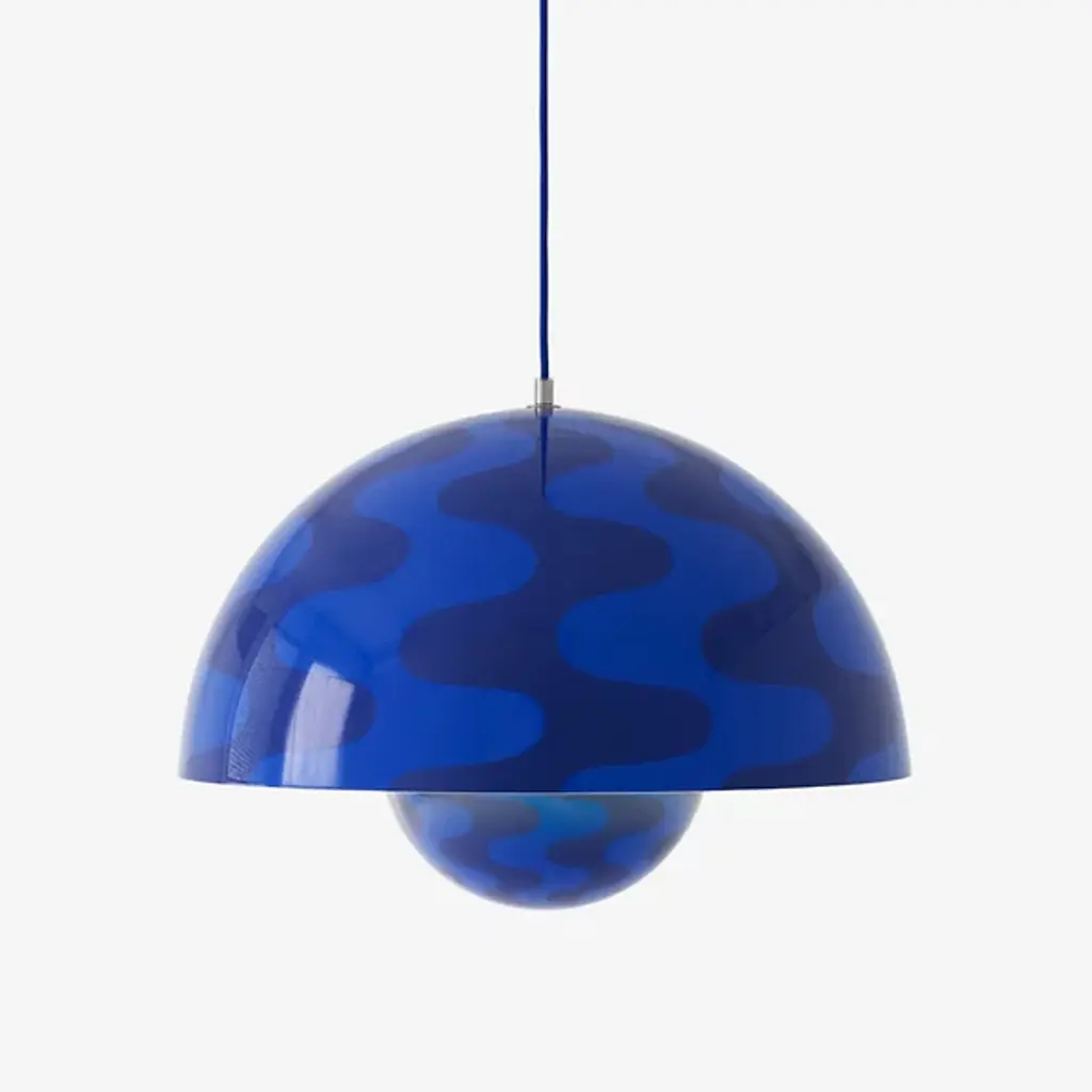 More than twice the size of the VP1, this pendant is exactly as its name states: big. Like its little sibling, the VP2 is made up of 2 semi-circular facing spheres—the upper sphere twice as large as the lower one. The late, great Verner Panton believed in the possibility of a happier, brighter future, and designed with this in mind. The visionary Dane was the first to do inflatable furniture, cardboard houses and single-form, injection-molded plastic chairs—and all with an optimistic nod. Those chairs appeared in Stanley Kubrick's 1968 masterpiece 2001: A Space Odyssey; the same year experienced revolutions in the streets of Paris, Rome and the U.S. celebrating change by a generation fueled on Flower Power and a new outlook on the world. Verner marked it all the next year with the FlowerPot collection of table and pendant lights. Spherical, bold and modern, they are as fresh looking now as they were in 1969. No wonder Copenhagen house &Tradition decided to reissue them.