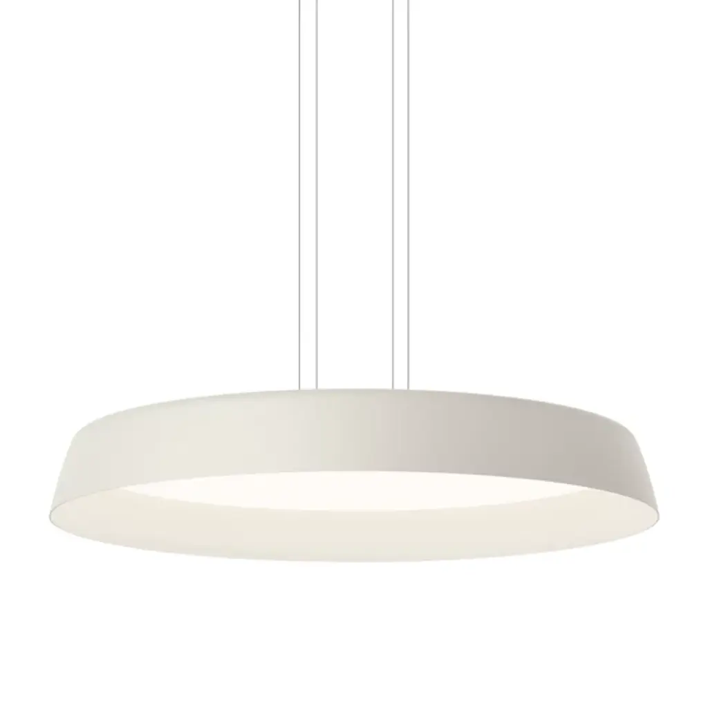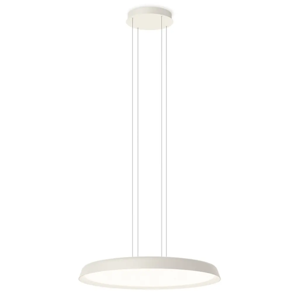 The Bigger Hanging LED Pendant from Vibia adds a contemporary appeal and broad-reaching ambiance to inside spaces. Designed by the La Invisible firm, it plays with notions of weightlessness, suspended from ultra-slim cables, and placing energy-efficient lamping inside a flat diffuser. The cable hang works well for locations where the light is required further down from the ceiling, while the geometry is simple and dramatic, casting a column of light below the fixture.