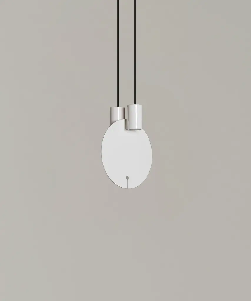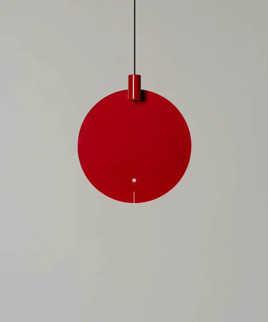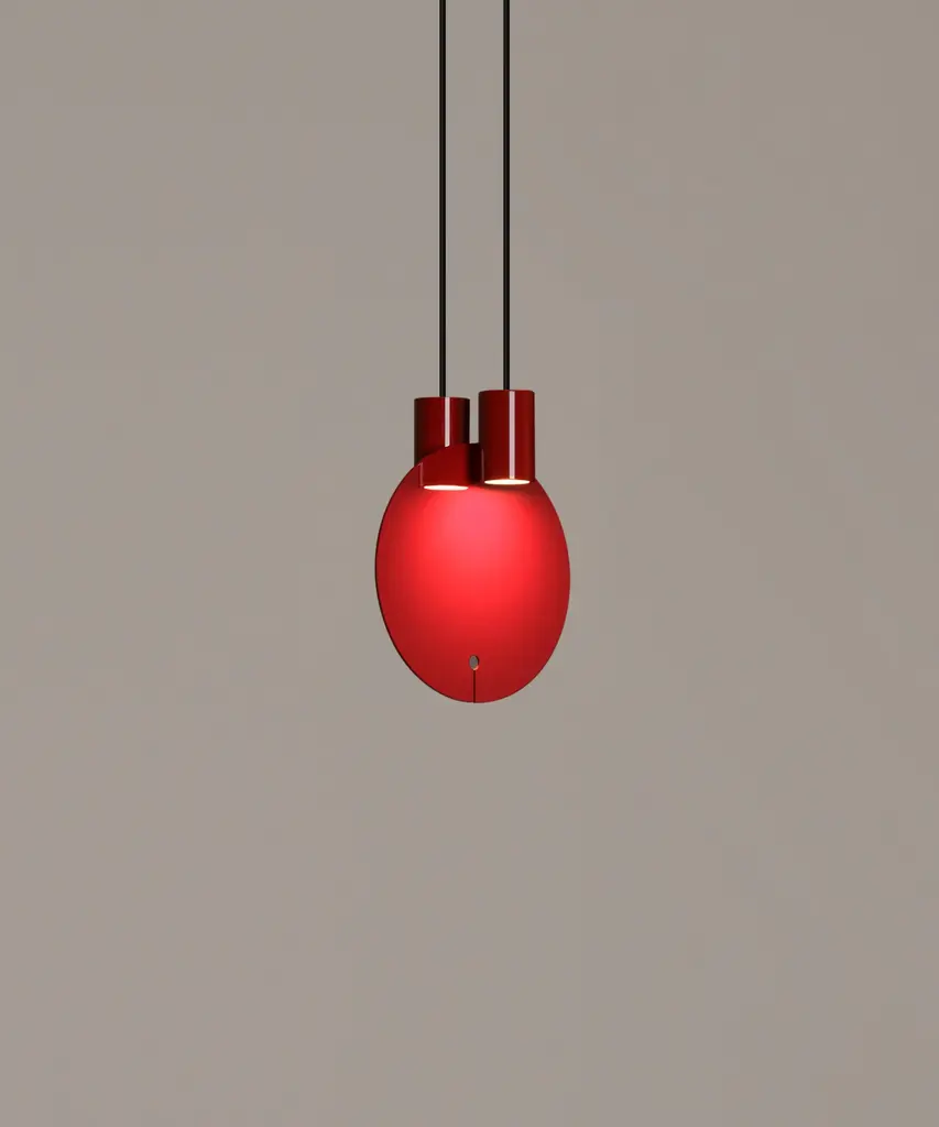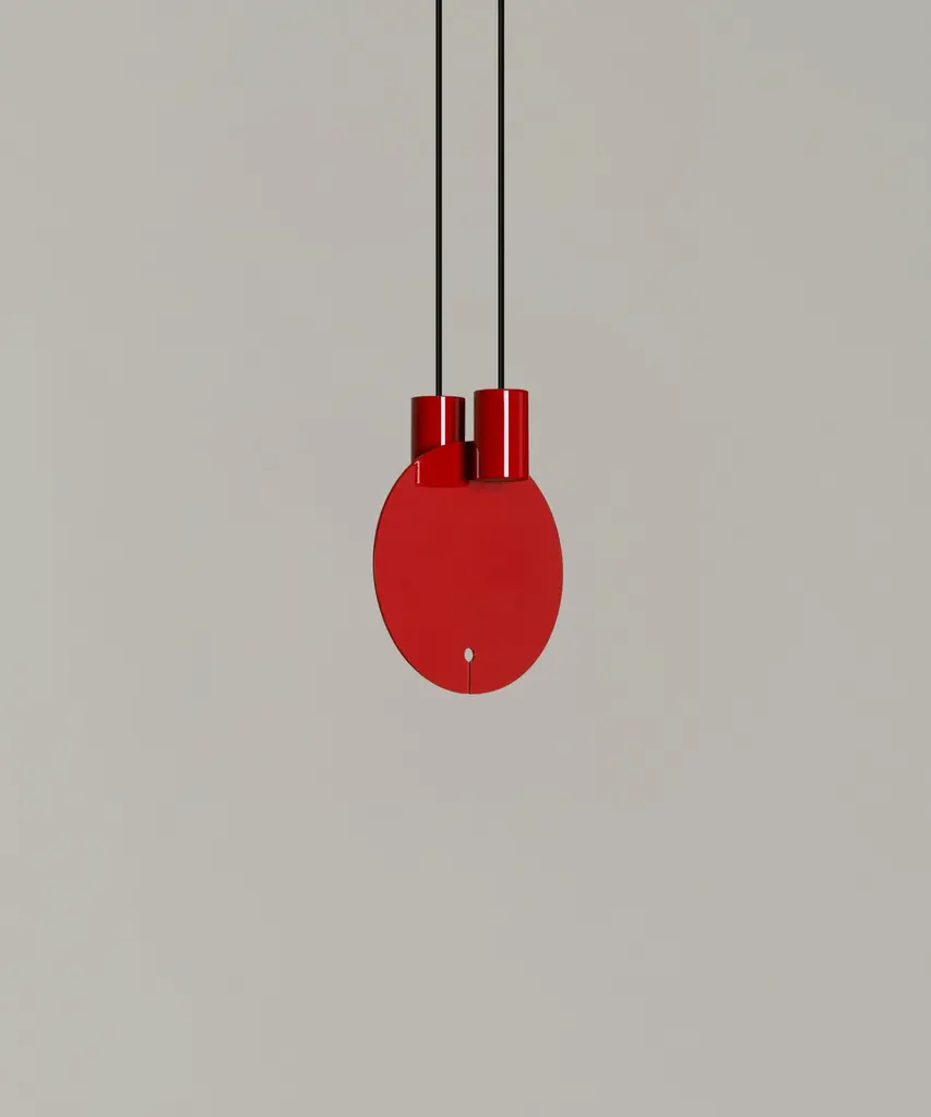 A precious object that offers high-quality illumination and captivates through its warm reflections. Its two vertical spotlights on either side of the plate produce a sense of volume that enriches the room. Made in two sizes, small and large, and in two different colors, white or intense red, the nuances of the lacquered surface are revealed when switched on while its sculptural dignity prevails when turned off. Produced by the Barcelona-based lighting purveyor, Santa & Cole.