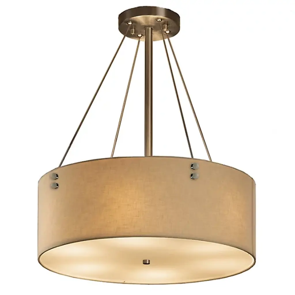 Billie Large Natural Burlap Drum 3 Light Pendant Lamp