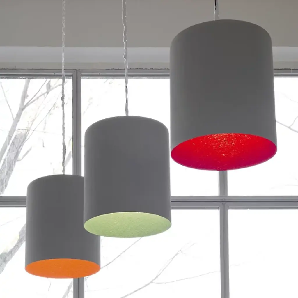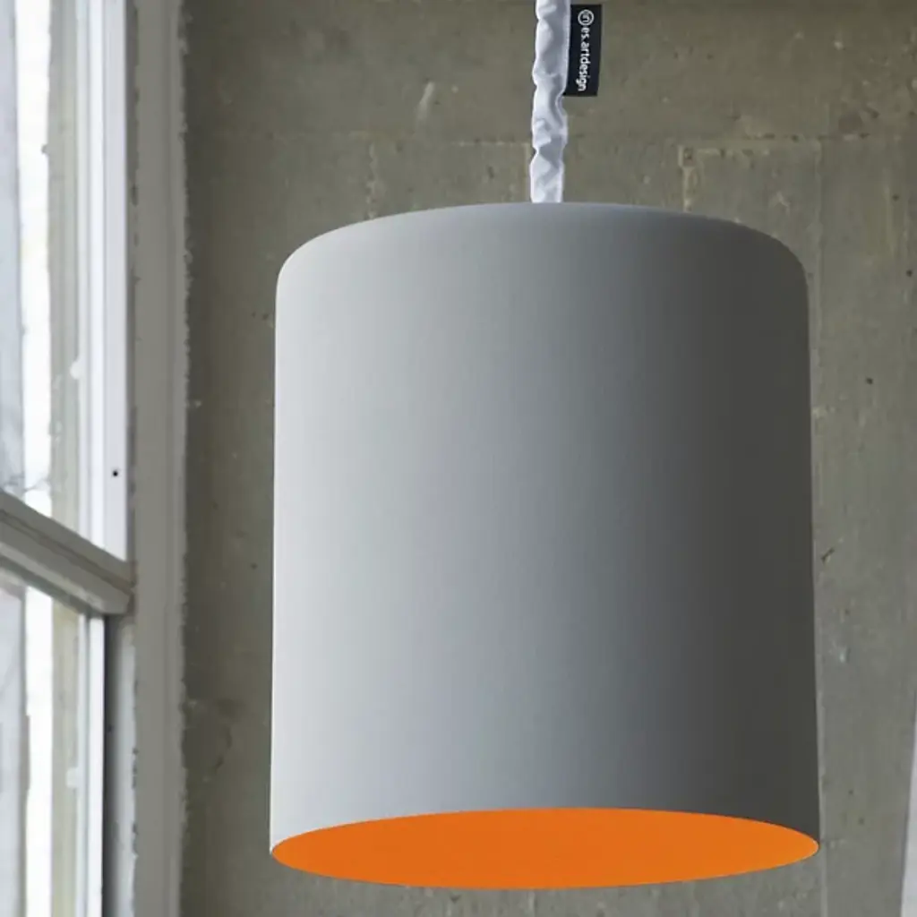 Painted to mimic the texture of cement, the In-Es Art Design Bin Cemento Pendant is actually made from a special blend of fiberglass and resins (Nebulite®). The industrial silhouette has a surprisingly soft effect with the smooth light grey exterior and interior with bright color options. The inner shade showcases the fibrous quality of Nebulite®, altering the reflected down light with each color option.