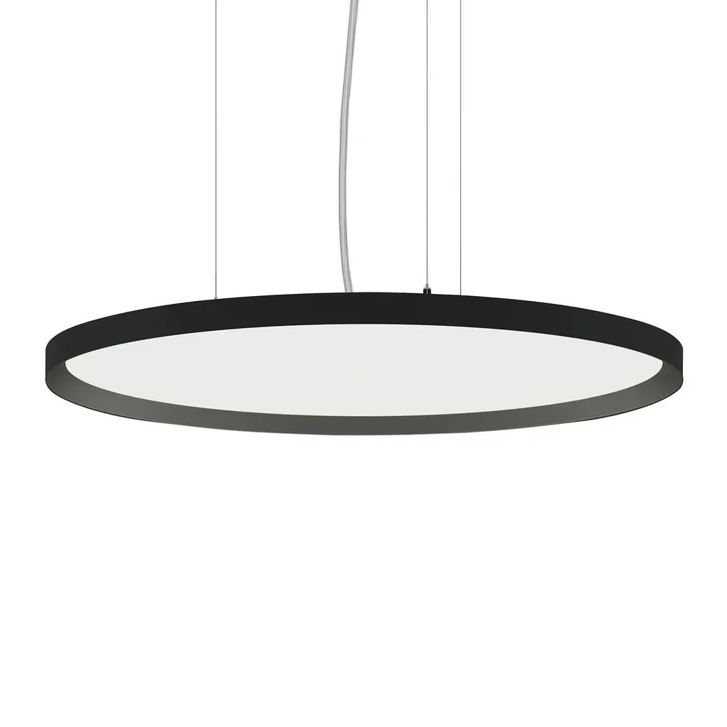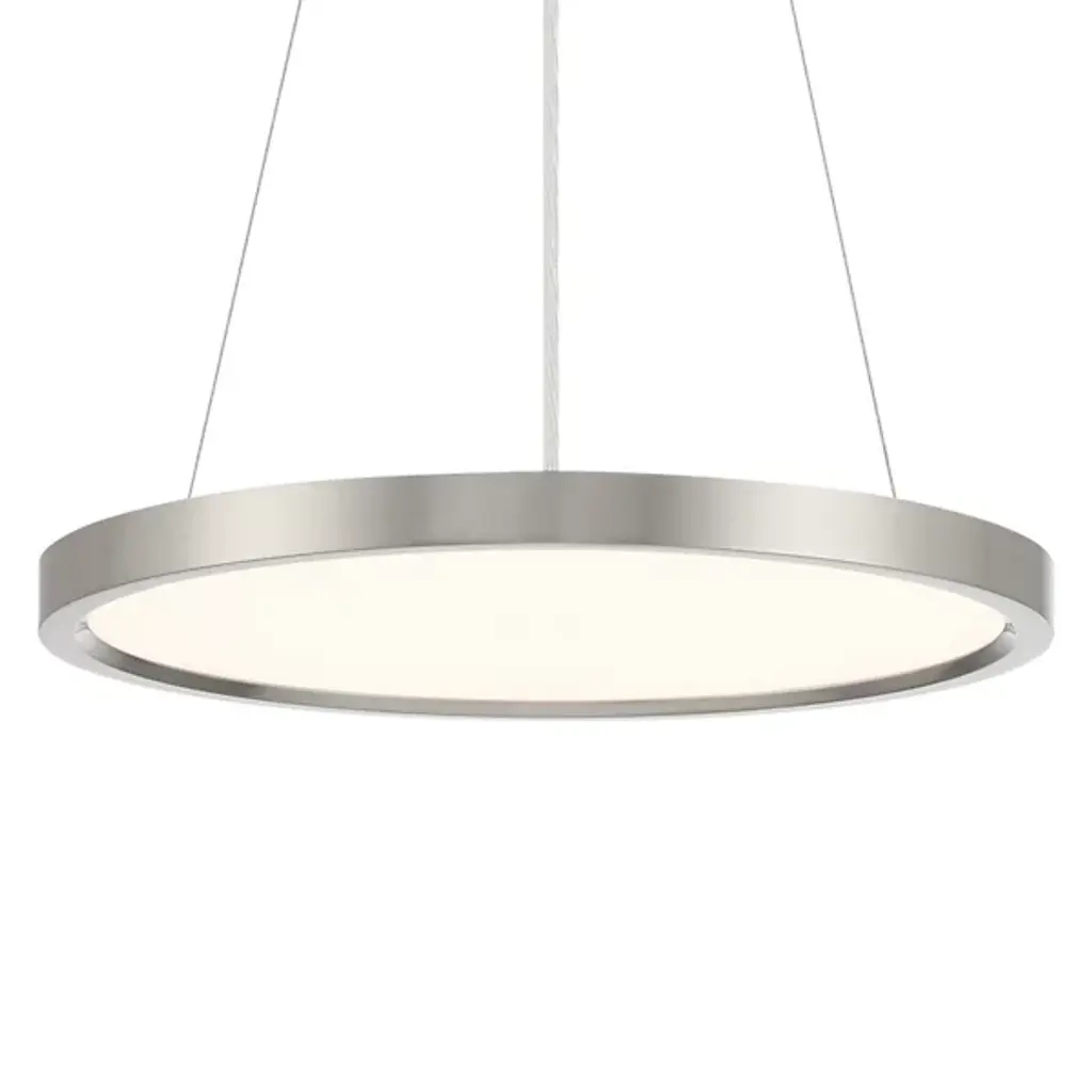 The Bina Round LED Pendant Light from Bruck Lighting redefines minimalist elegance with its ultrathin profile. This architectural masterpiece features a striking aluminum hoop frame measuring just 1.5" in depth, creating a bold presence that appears to float effortlessly in space. The sophisticated direct lighting diffuser, enhanced by thoughtful details like beveled edges and a clean cable suspension system, delivers both dramatic illumination and refined aesthetics. Perfect for transforming lofts, open-concept homes, and upscale commercial environments, this distinctive fixture stands apart from conventional designs with its perfect balance of commanding presence and understated luxury—a true statement piece for discerning spaces. Highlights
