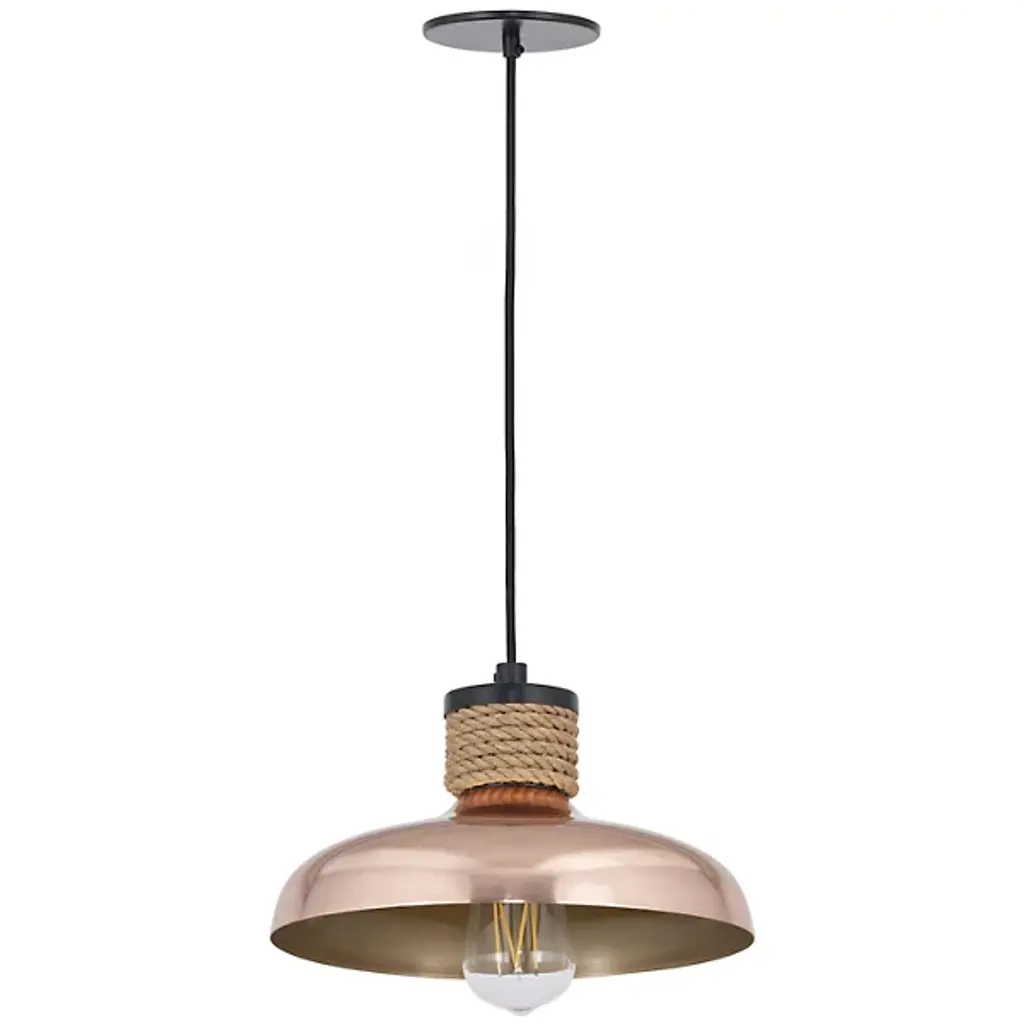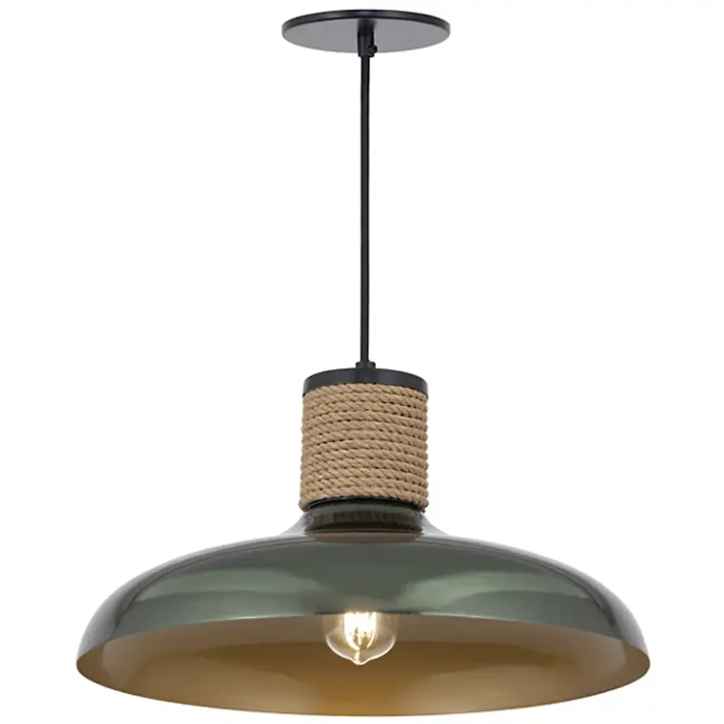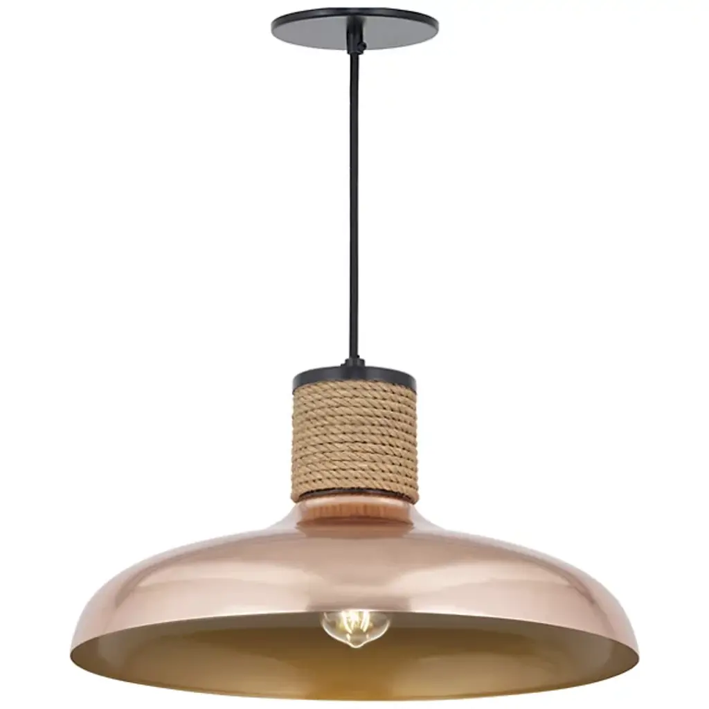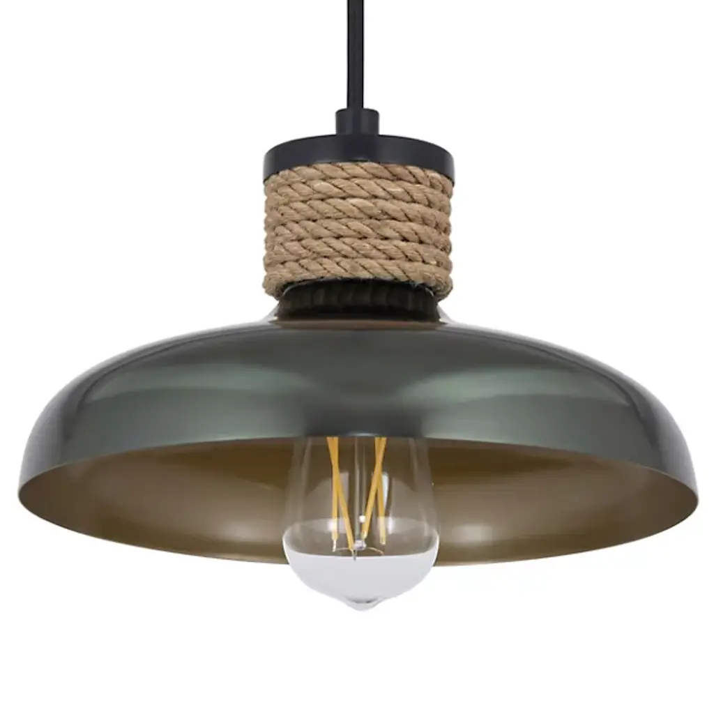 Inspired by industrial warehouse and farmhouse lighting, the Bingham Pendant from Maxim Lighting combines rustic charm with modern design elements. It features a spun metal shade paired with a hand-wound rope detail, adding a touch of vintage appeal. The adjustable rayon fabric cord allows for versatile hanging options, making it perfect for various spaces. Whether in a kitchen, dining room, or entryway, this piece brings warmth and character to any setting with its timeless design and rustic elegance.