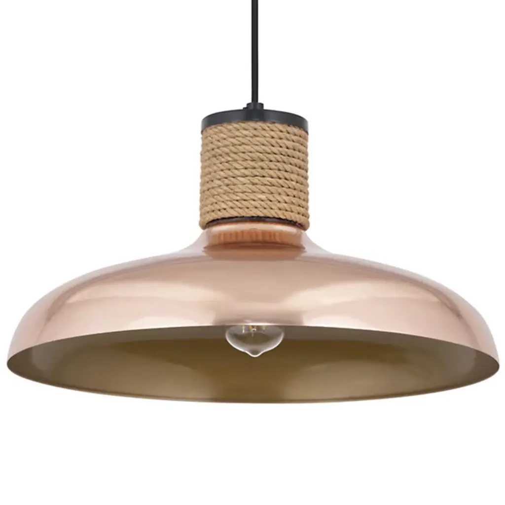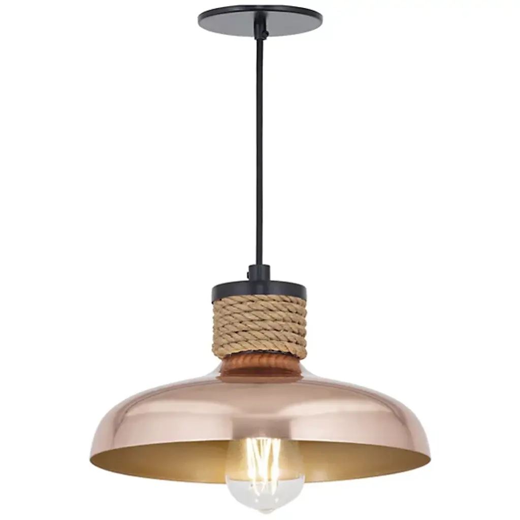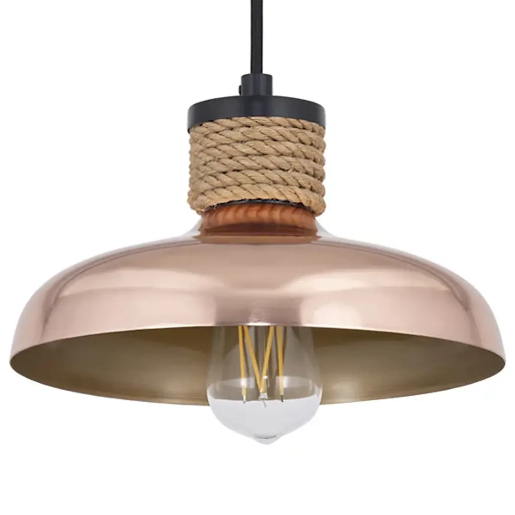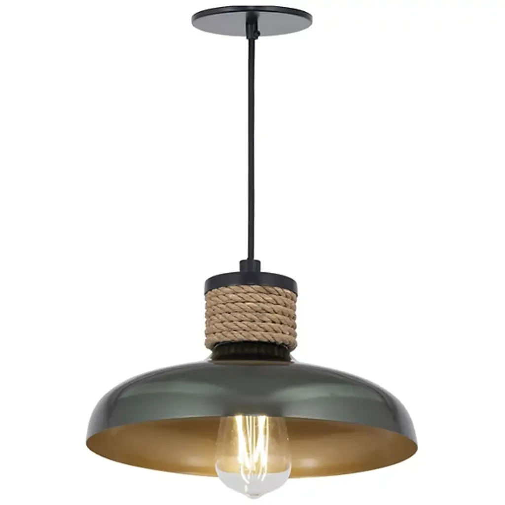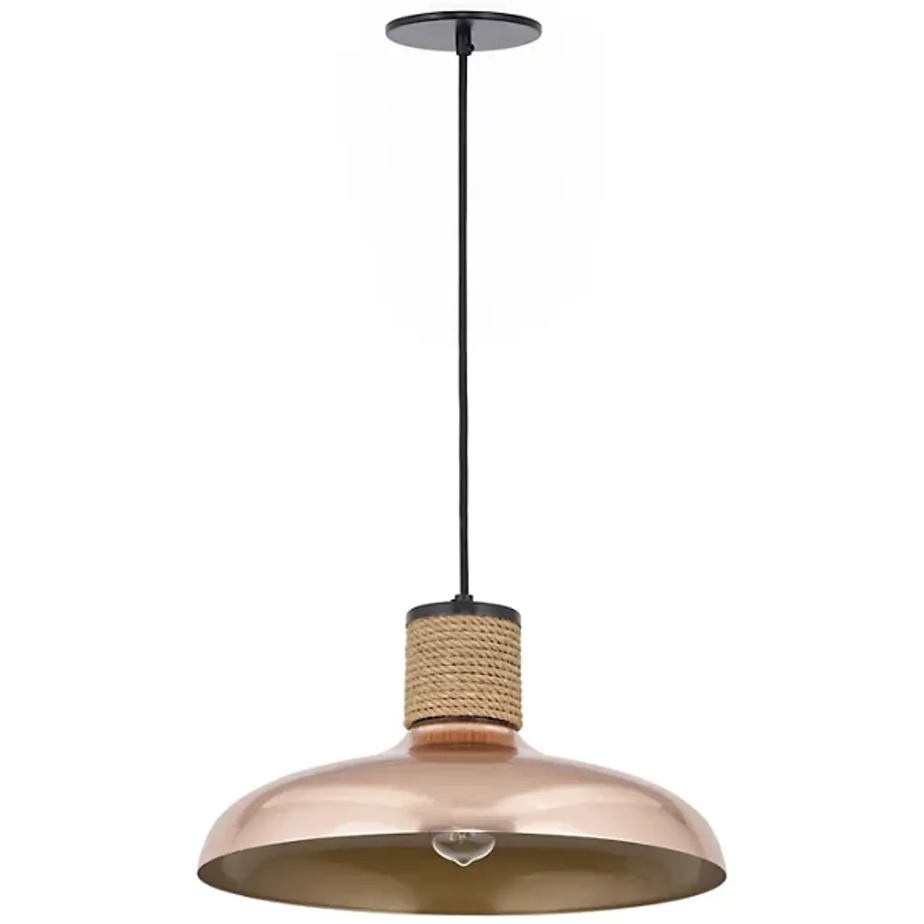Inspired by industrial warehouse and farmhouse lighting, the Bingham Pendant from Maxim Lighting combines rustic charm with modern design elements. It features a spun metal shade paired with a hand-wound rope detail, adding a touch of vintage appeal. The adjustable rayon fabric cord allows for versatile hanging options, making it perfect for various spaces. Whether in a kitchen, dining room, or entryway, this piece brings warmth and character to any setting with its timeless design and rustic elegance.