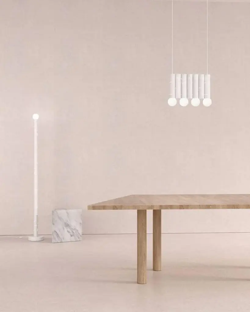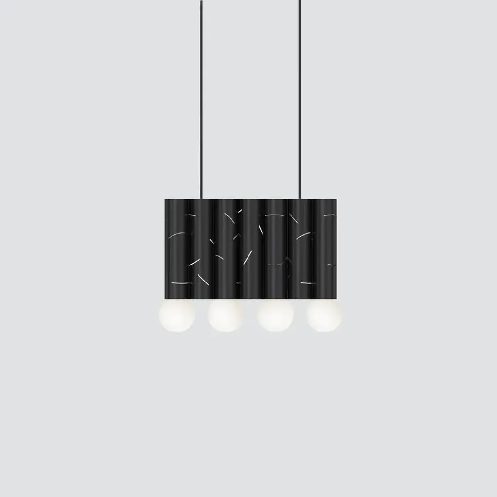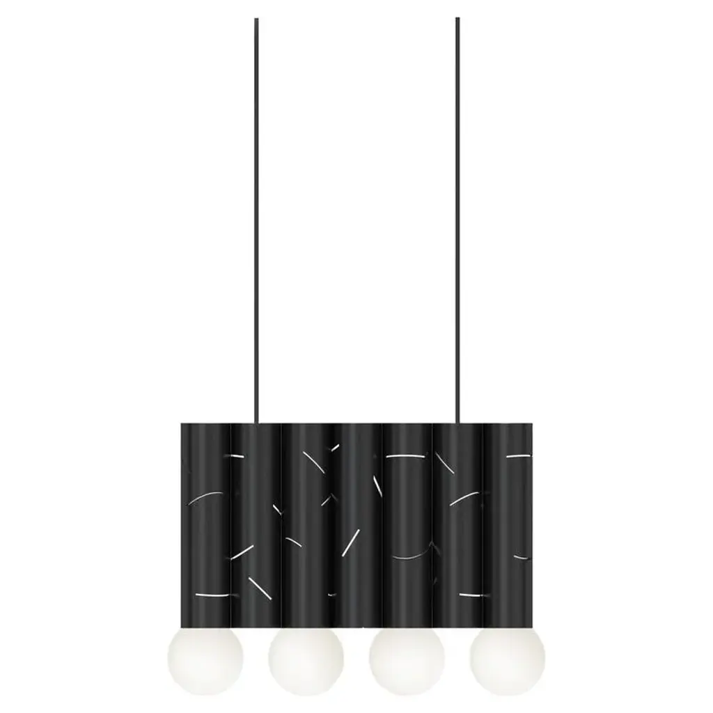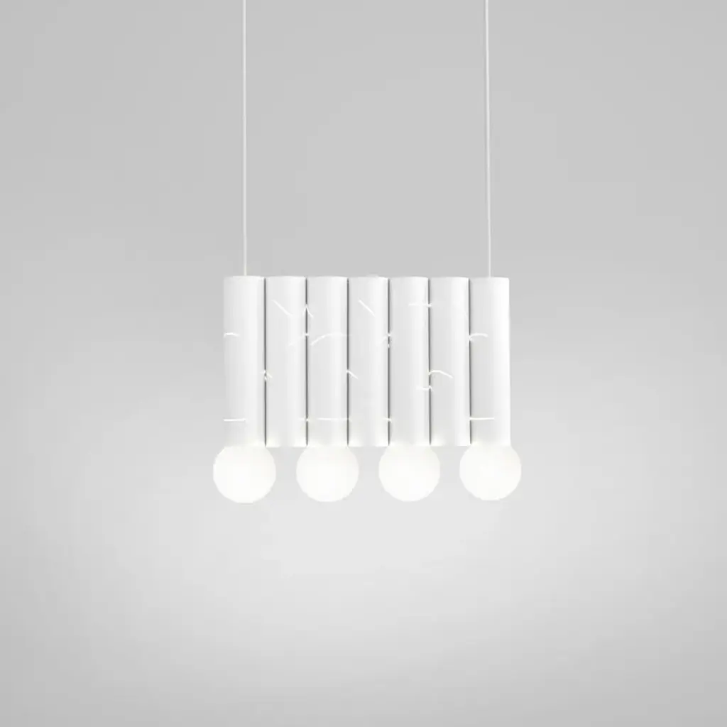 Birch pendant light, 7 elements, by atelier areti dimensions: d 9 x w 35 x h 32.5 cm. Materials: black powder-coated metal, white glass. up to 250v (europe/uk standard).