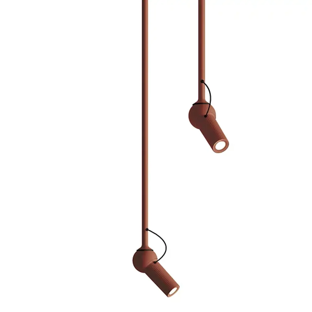 Vibrant and expressive, the Bird Mini LED Pendant from kdln offers a bold, adjustable presence to inside ceilings. A slender stainless steel design by Jordi Pla, its size and simplicity are its greatest assets. Featuring a circular canopy and a central rod that utilizes a spherical hub to magnetically retain a textured, cylindrical head made of die-cast, varnished aluminum that contains its efficient LED lamp inside. This tactile, easily adjustable spotlight shines out a focused beam through a blown-glass diffuser set into the end of the cylinder, offering task lighting where it’s desired and offset radiance when it is not.
