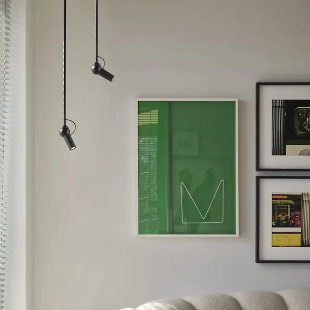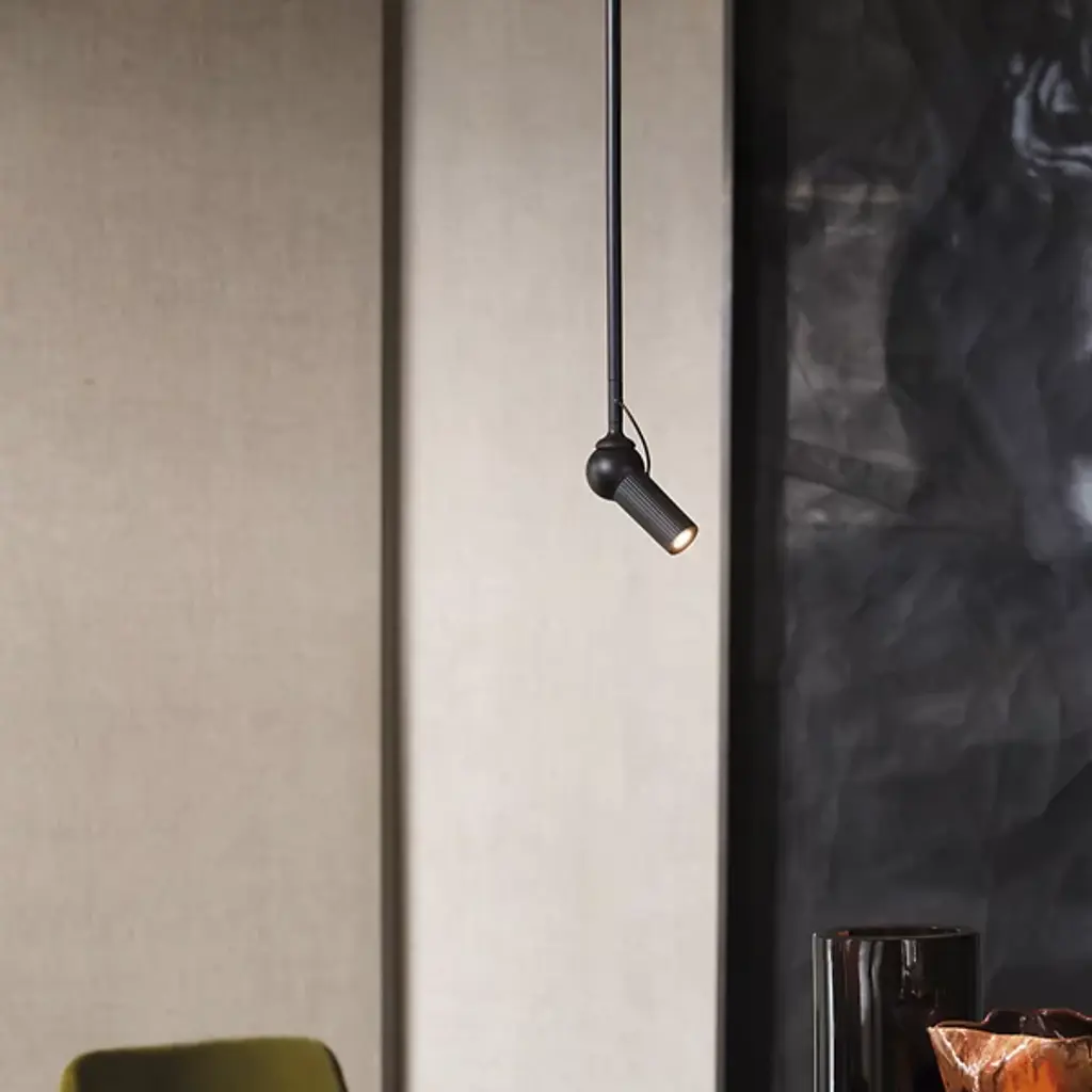 Vibrant and expressive, the Bird Mini LED Pendant from kdln offers a bold, adjustable presence to inside ceilings. A slender stainless steel design by Jordi Pla, its size and simplicity are its greatest assets. Featuring a circular canopy and a central rod that utilizes a spherical hub to magnetically retain a textured, cylindrical head made of die-cast, varnished aluminum that contains its efficient LED lamp inside. This tactile, easily adjustable spotlight shines out a focused beam through a blown-glass diffuser set into the end of the cylinder, offering task lighting where it’s desired and offset radiance when it is not.